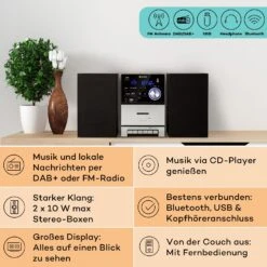 Oakland DAB Plus Retro-Stereoanlage DAB+/FM BT-Funktion Vinyl CD Kassette Inkl. Lautsprechern