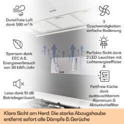 Kronleuchter XL Inselabzugshaube 90cm Umluft 590m³/h LED Touch Weiß