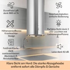 Bonita Dunstabzugshaube 90cm 500 M³/h Inselhaube Design Edelstahl