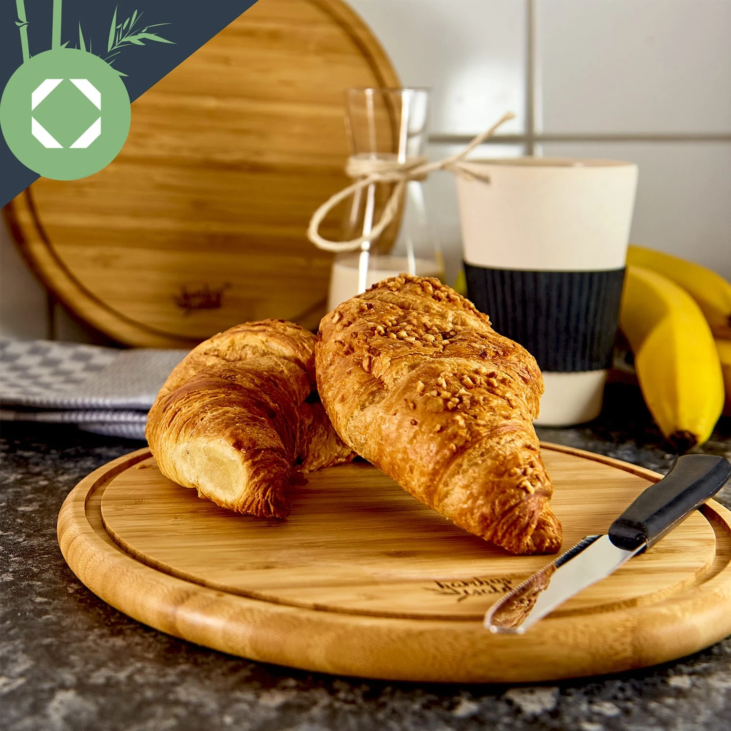 - 3er-Set: runde Bambusbrettchen mit Krümelrille