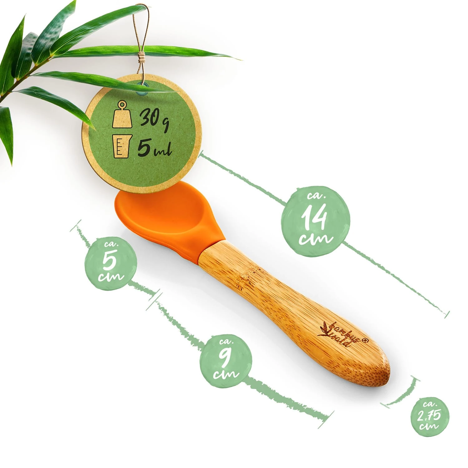 Perfekt für Babys und Kleinkinder: Das hochwertige 5er-Set Kinderlöffel von Klarstein. Der Stiel aus reinem Bambus liegt wundervoll in der Hand, wenn du deine Kleinen mit Brei, Suppe oder anderen Leckereien fütterst. Dabei ist die Laffe komplett aus weichem Silikon hergestellt, was sie geschmacksecht und hygienisch macht. So wird das Schlemmen für die Kleinen zu einem besonderen Erlebnis. Zudem sind die Löffel perfekt geeignet, um das Essen zu lernen.