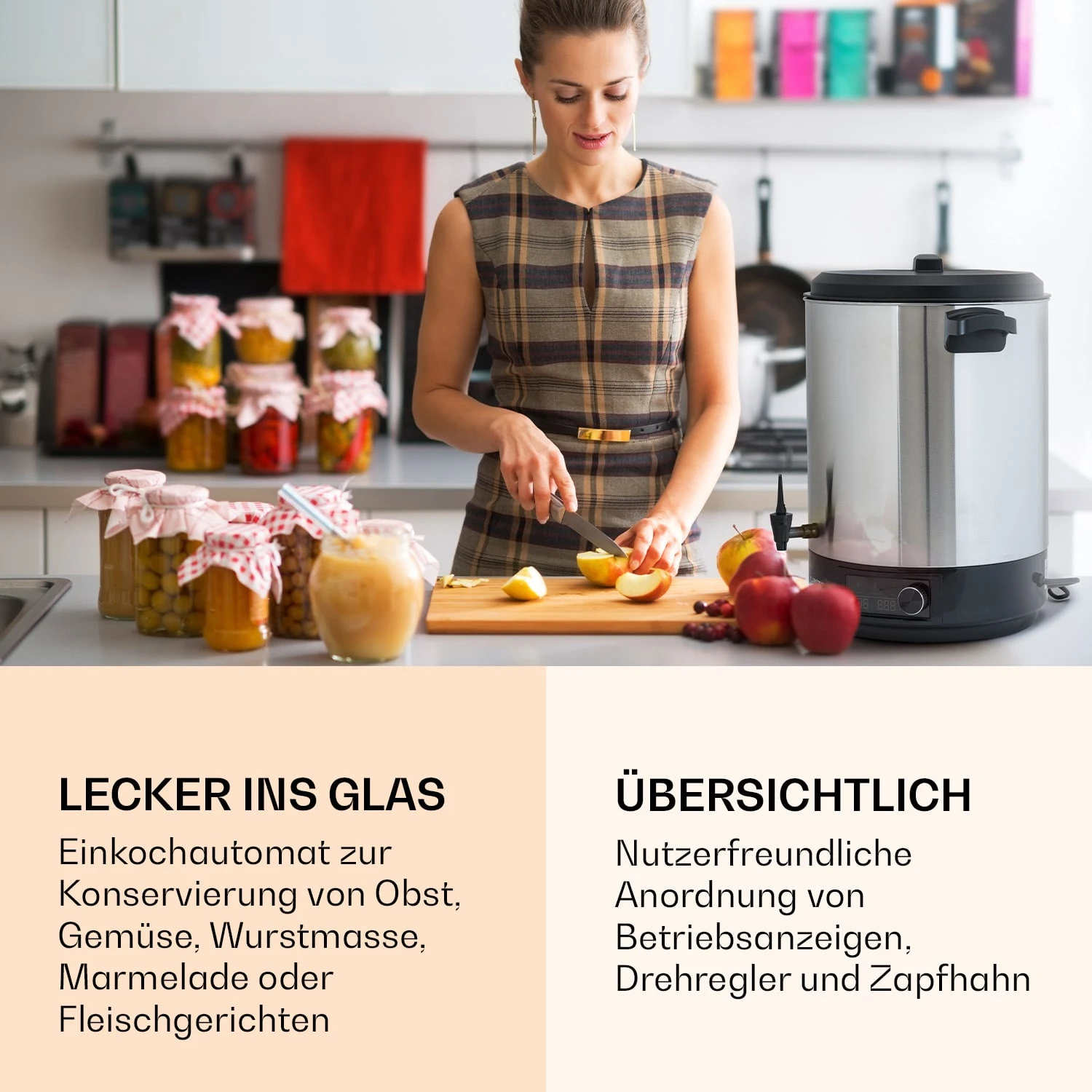 Lecker aus dem Einkochglas: Der Klarstein Abbey 40 Einkochautomat ist unser Star, wenn es um die Konservierung selbst zubereiteter Marmeladen sowie eigener Obst- und Gemüsekreationen geht.