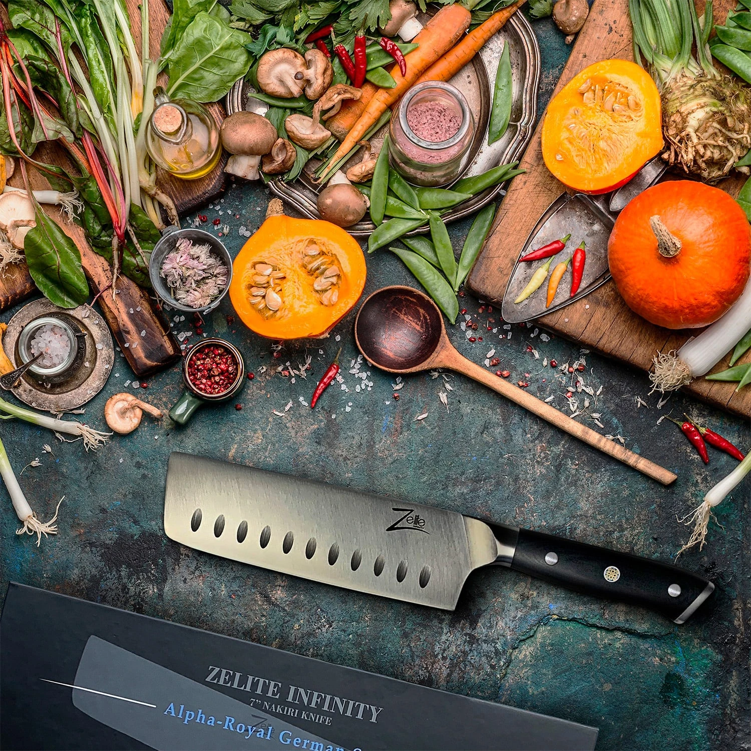 Gute und scharfe Messer sind ein Muss für Profiköche und all die, die gerne in der eigenen Küche Hand anlegen. Unsere Alpha-Royal German Messerserie von Zelite Infinity by Klarstein vereint hochwertige Materialien, perfekte Verarbeitung und edles Design zu Präzisionswerkzeugen, die dich im täglichen Kochgeschehen begeistern.