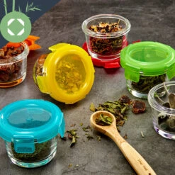 Ob für Kindernahrung, Tees und Gewürze oder für Backzubehör: Mit ihren kleinen Portionen von 110 ml je Glas sind die auslaufsicheren Klarstein Babygläser optimal für das Zubereiten und Aufbewahren von Babynahrung geeignet. Mit ihren bunten Deckeln sind sie wie kleine Heinzelmännchen in der Küche, denn sie schaffen Ordnung. Schnell verschwinden allerlei Kleinigkeiten in ihnen und sind dort ideal aufgehoben – alternativ auch Tee, Gewürze oder Backwaren.