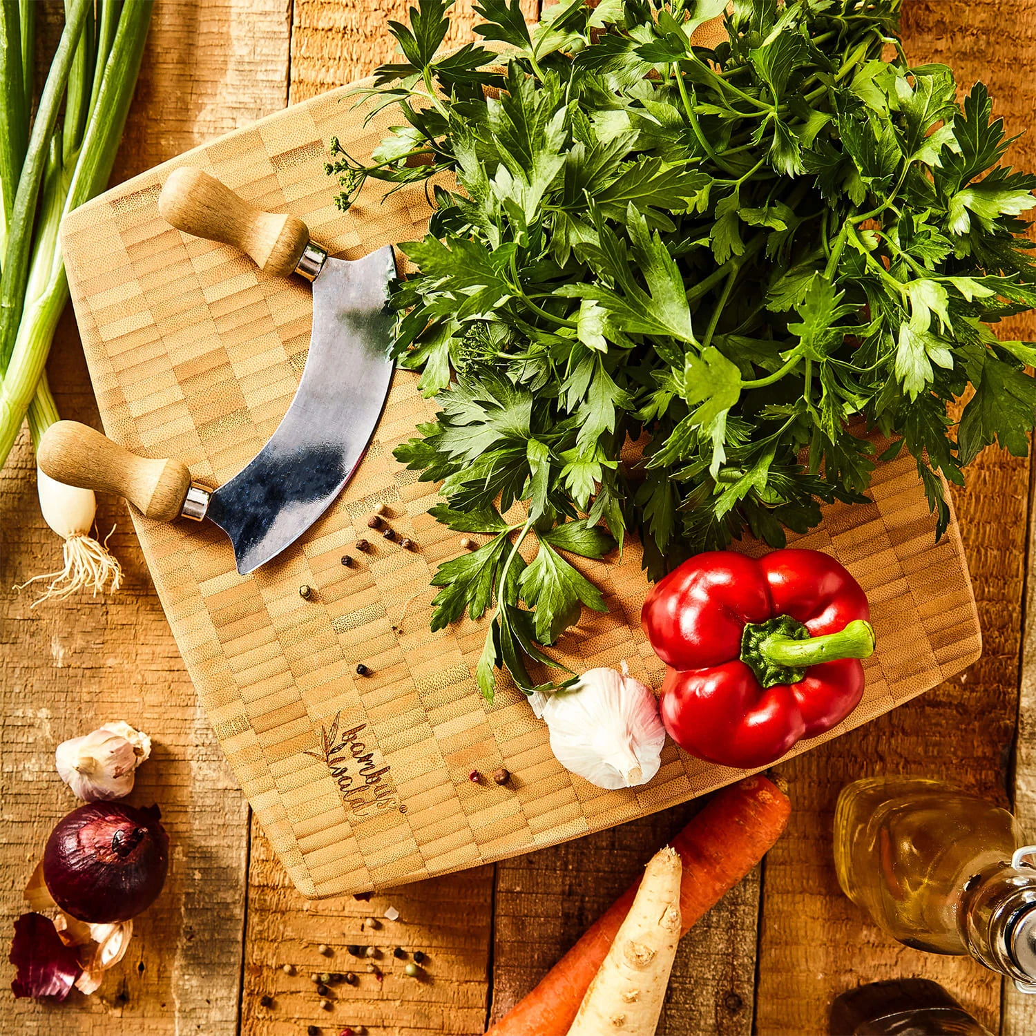 Bambus-Hackbrett 30 X 6,8 X 30 Cm (BxHxT) Standfüße Haltegriff Pflegeleicht