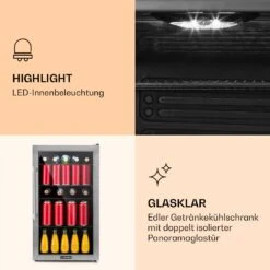 Beersafe 3XL Kühlschrank 98 Liter 4 Böden Panoramaglastür Edelstahl