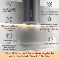 Feuer frei gegen Dampf und Küchengeruch: Die Klarstein Beretta Inselabzugshaube bringt Glanz in die Küche und befreit die Luft von Dampf und Gerüchen.