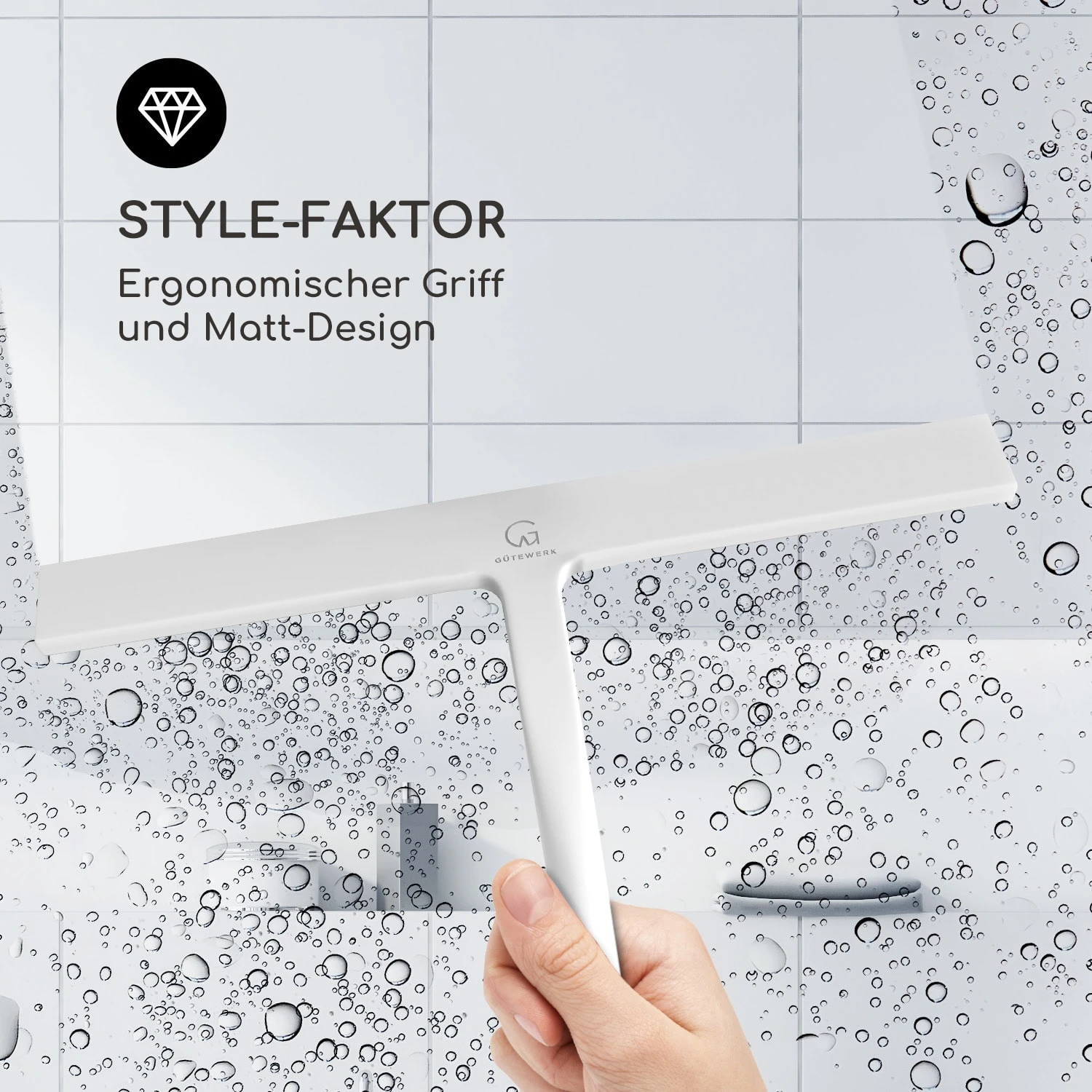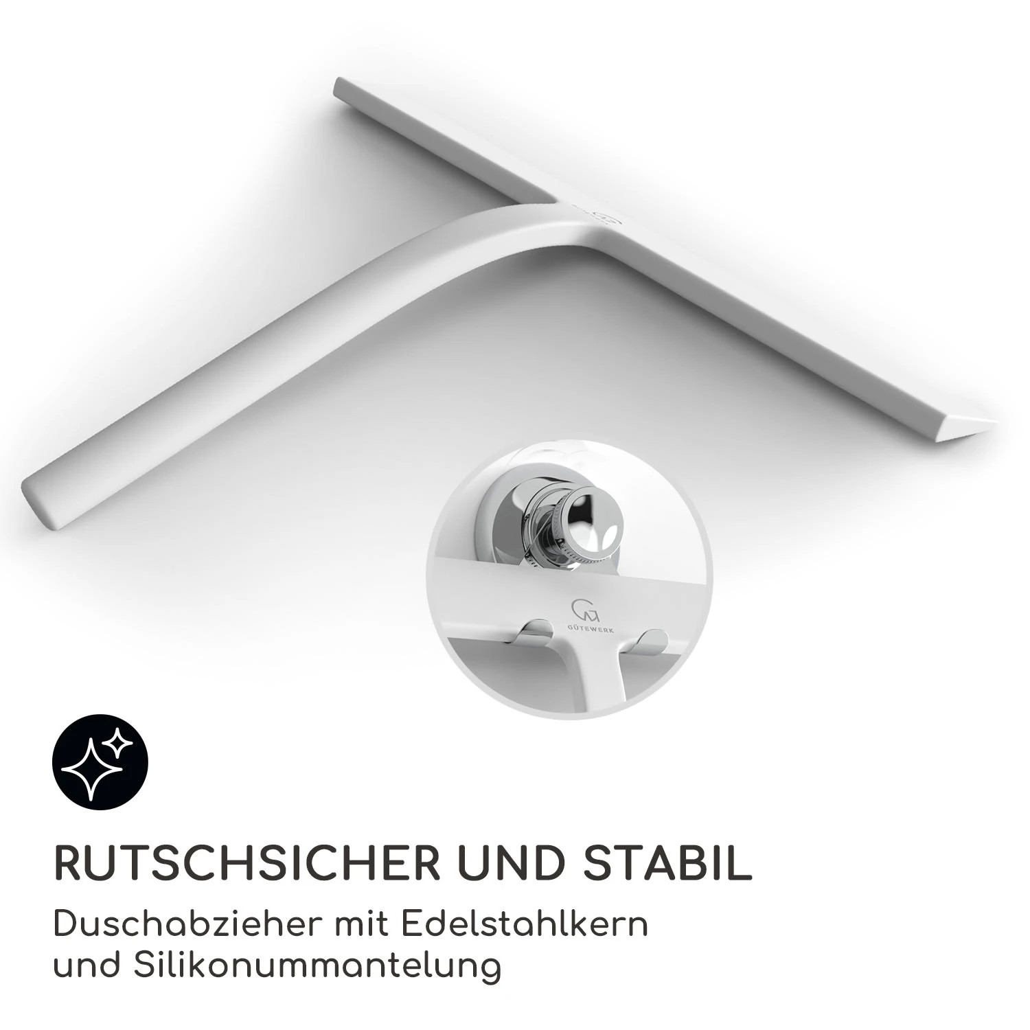 Stylisher Helfer mit großer Wirkung: Der Gütewerk by blumfeldt Blaze Duschabzieher reinigt und entfernt zuverlässig Wassertropfen und Feuchtigkeit von glatten Flächen. Ob beim Fensterputzen oder in der Duschkabine, die weiche Silikonklinge sorgt für streifenfreien Glanz. Damit der Scheibenwischer auch immer griffbereit ist, sind im Lieferumfang gleich drei unterschiedliche Halterungen dabei: eine Vakuum-Edelstahlhalterung, eine Silikonhalterung und ein abnehmbarer Silikonhaken. Alle Aufhängungen kannst du ohne Bohren oder Kleben ganz einfach anbringen. Das moderne und clevere Design runden das Bild exzellent ab. Der solide Edelstahlkern ist von einer weichen Silikonhülle umschlossen, das verringert Quietschen und wirkt beim Fallen dämpfend, so werden Schäden in der Duschkabine, auf den Fliesen oder dem Boden vermieden.