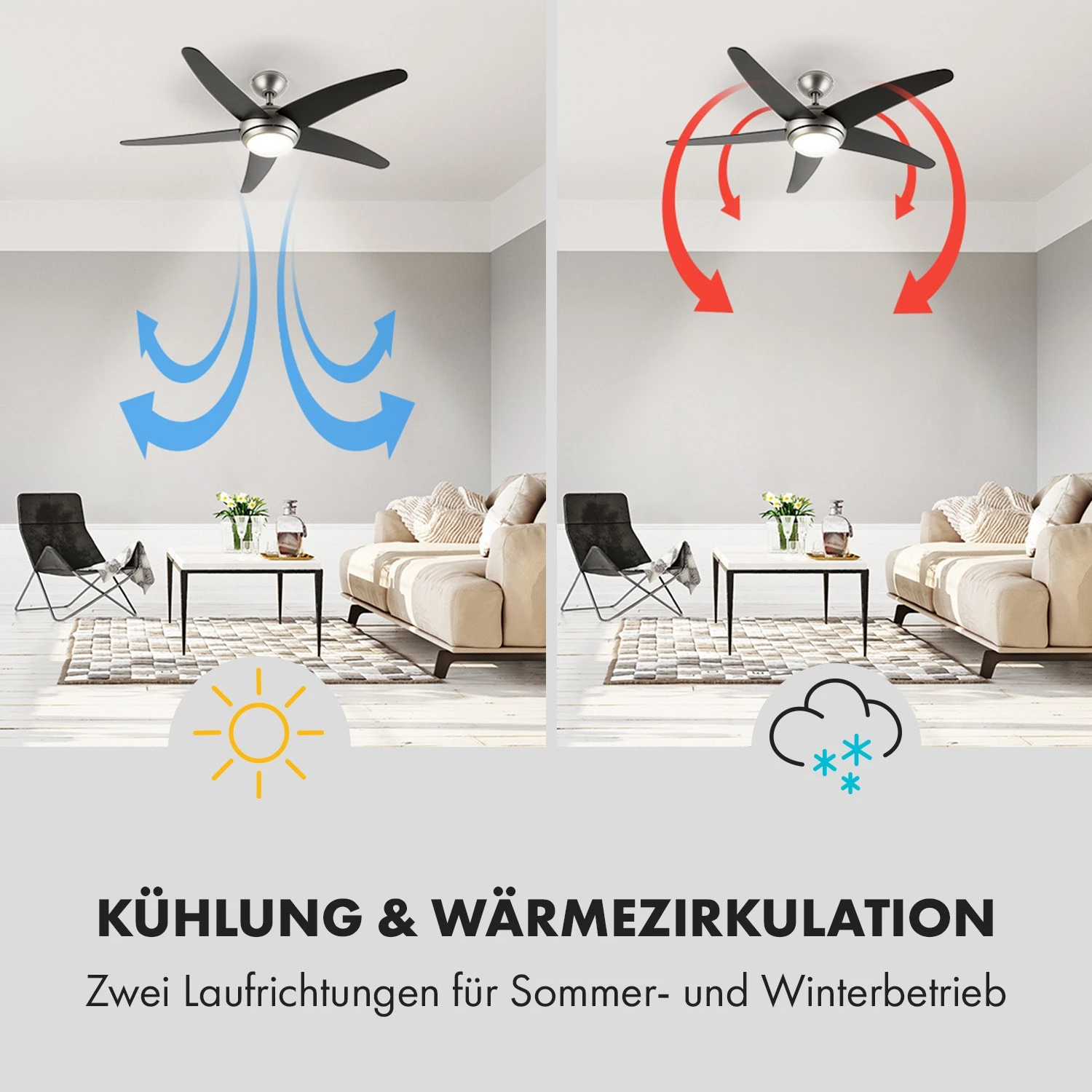Bolero 2-in-1-Deckenventilator 134cm Leuchte 55W Fernbedienung Schwarz