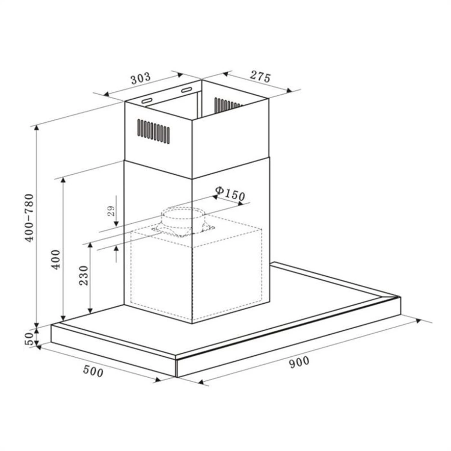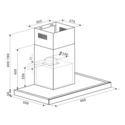 - Maße Dunstabzugshaube: ca. 90 x 45-85 x 50 cm (BxHxT)