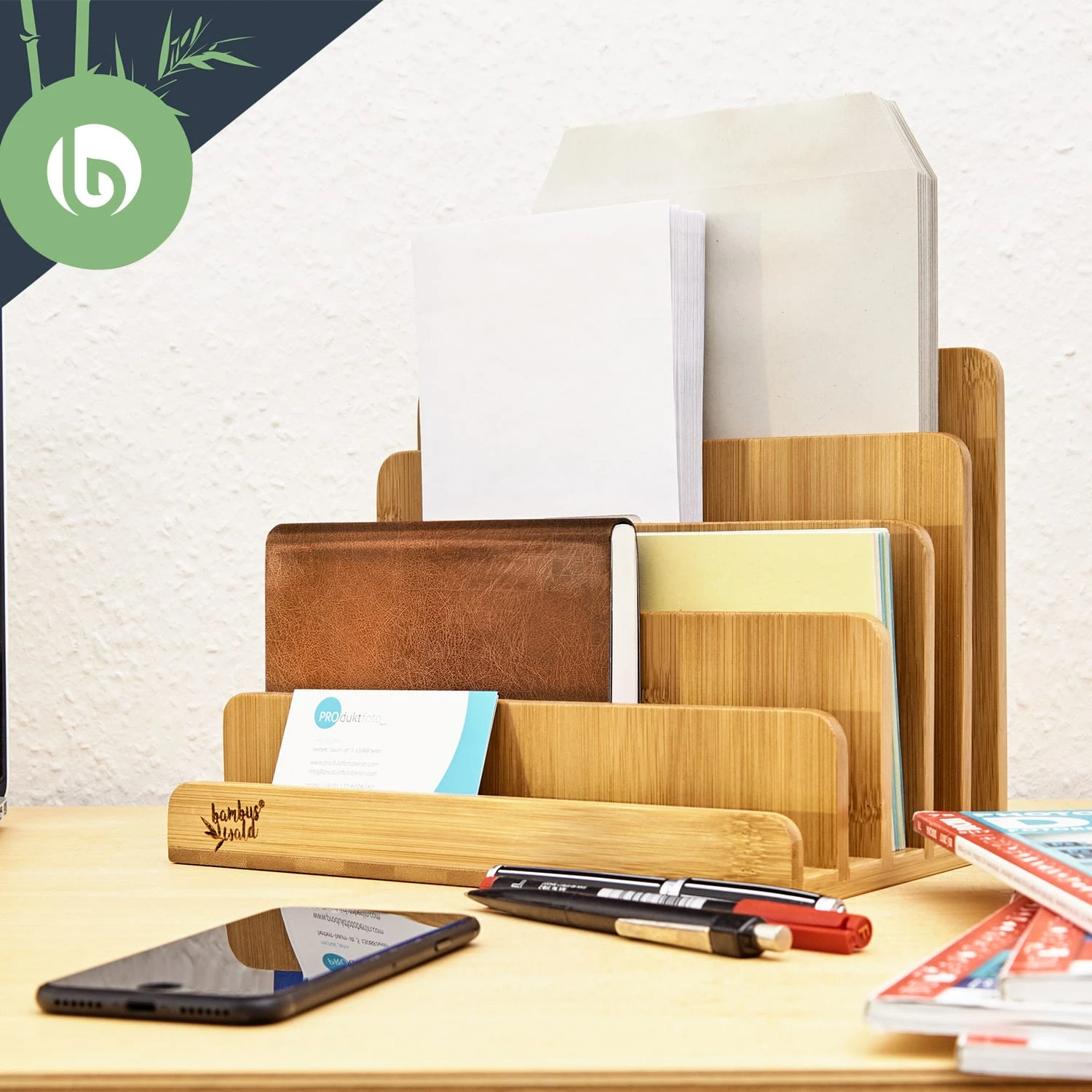 Briefablage Mit 5 Fächern DIN A4 25×17,5x16cm Stehend / Liegend Bambus