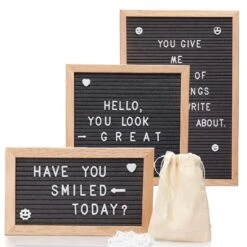 Das trendige blumfeldt Letterboard der Größe 25 x 25 cm besitzt eine Aufhängevorrichtung sowie einen Holzständer. Damit kannst du die Memotafel als Dekoration auf deinem Schreibtisch, an der Wand, auf der Kommode oder in der Küche benutzen. Die Buchstabentafel lässt sich nach Lust und Laune „bestecken“. Hier findet sich genug Platz für deine Lieblingssprüche, Memos, To Do-Listen, Ideen, Nachrichten, Menüs und Terminplanungen! Mit der großen Auswahl an 340 weißen Buchstaben und Symbolen kannst du jeden beliebigen Satz schreiben.