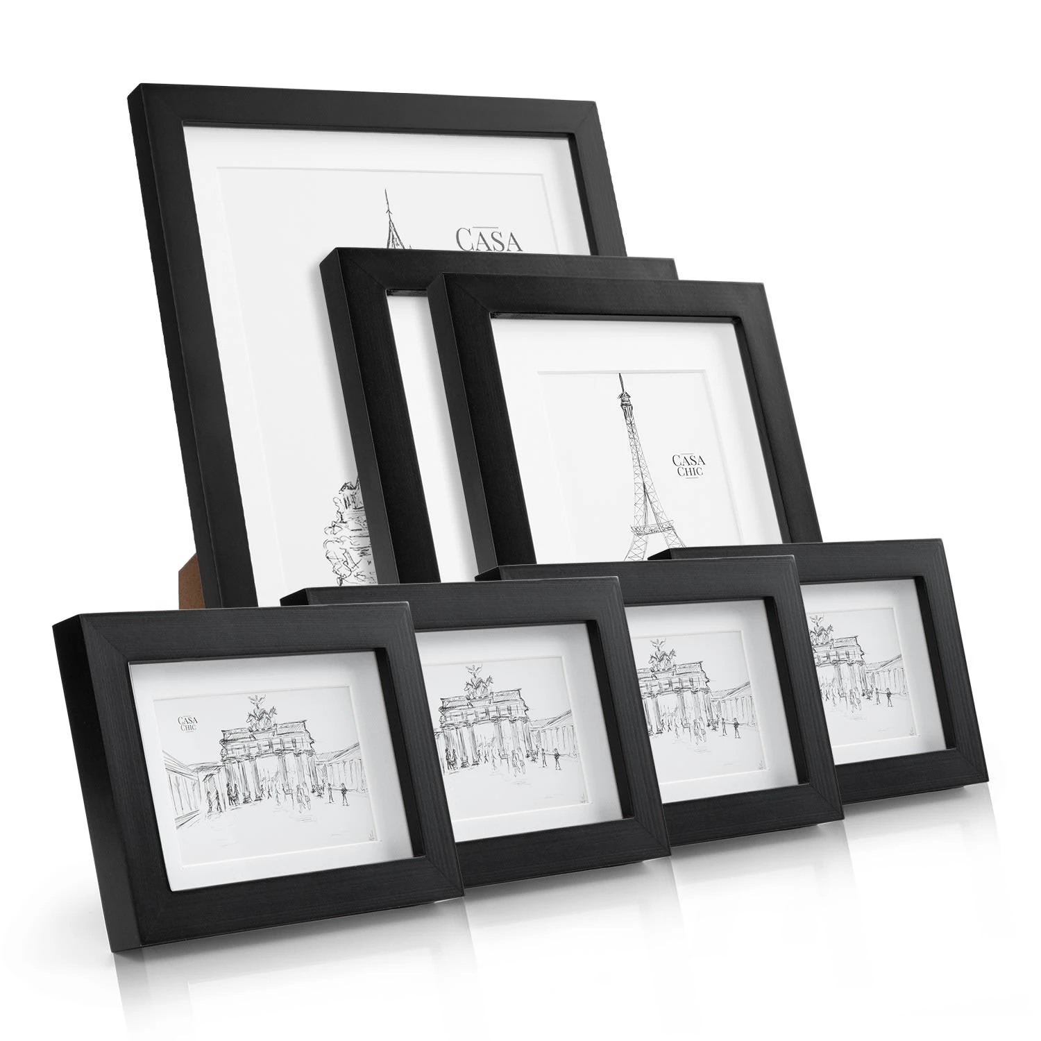 Mit den schlichten Chalcot Echtholz-Bilderrahmen von Casa Chic by blumfeldt kommen deine Fotos und Bilder sowohl im Hoch- als auch im Querformat ideal zur Geltung. Gestalte wunderschöne Wandcollagen, denn der Chalcot kommt direkt als passendes 7er-Set zu dir nach Hause. Die mitgelieferten Passepartouts überlassen dir die Wahl des passenden Bildausschnitts. Sein Rahmenprofil schenkt einen edlen Kontrast und die Frontscheibe aus Echtglas schützt vor Staub und Schmutz.