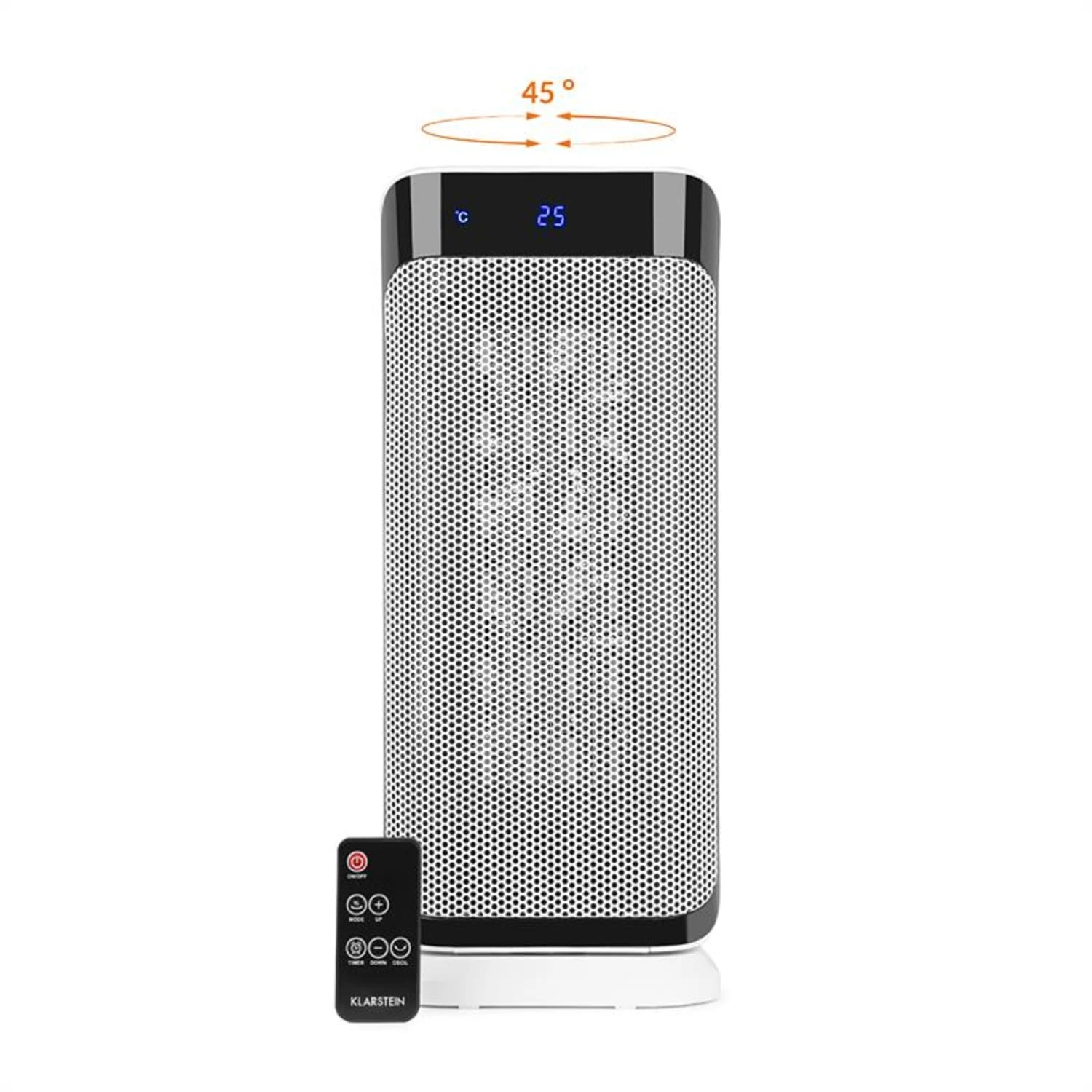 Der leistungsstarke Klarstein Chaval Heizturm sorgt jederzeit für kuschelige Wärme an kalten Tagen und Nächten. Mit 1.000 oder 2.000 Watt in 2 Leistungsstufen arbeitet er ganz nach individuellen Wärmebedürfnissen: Das integrierte Thermostat wird per stufenlosem Temperaturregler eingestellt und sorgt für eine intelligente Steuerung des Geräts. Sobald es die gewünschte Temperatur erreicht hat, schaltet sich der Heizstrahler ab und nimmt den Dienst wieder auf, wenn die Temperatur erneut unter den gewünschten Level fällt. Das spart zum einen Geld und verhindert zum anderen ein Überheizen. Neben dem Thermostat verfügt der kleine Chaval über eine Timer-gesteuerte Abschaltautomatik. Eine zuschaltbare Schwenkbewegung hilft bei der schnellen Ausbreitung der Wärme. Für entspannte Bequemlichkeit finden sich alle Bedienelemente des kompakten Heizturms auf der praktischen Fernbedienung wieder.