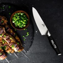 Das Zelite by Klarstein Infinity Comfort Pro 6″ Chefmesser ist das hocheffiziente Küchenwerkzeug fürs Schneiden, Hacken, Zerkleinern oder Würfeln von Fleisch, Fisch, Obst und Gemüse oder Käse. Die kurze Klinge ist dabei ideal für alle Arbeiten, die hohe Kontrolle und Präzision beim Schneiden benötigen, z.B. dem Putzen und Vorbereiten von Gemüse wie Brokkoli oder Bohnen. Im Stil eines französischen Chefmessers ist es das praktische Allzweckmesser in der Küche. Ergänze deine Küchenmesser oder nutze es als perfektes Geschenk für kochende Freunde.