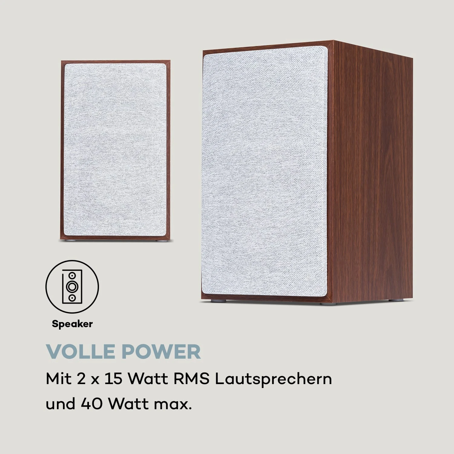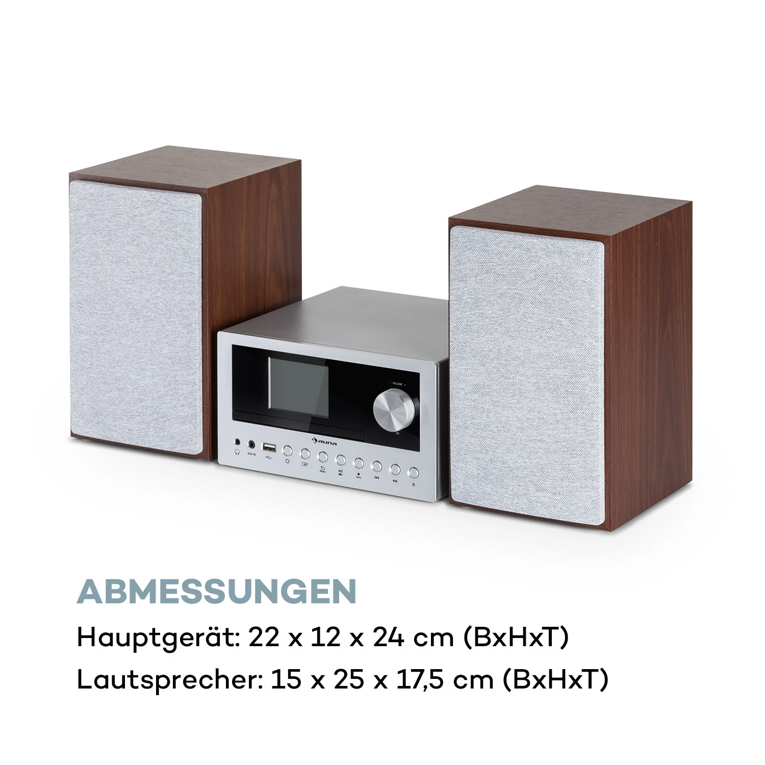 - Maße Lautsprecher: ca. 15 x 25 x 17,5 cm (BxHxT)