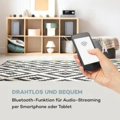 Die auna Connect System Stereoanlage mit 2 x 15 Watt RMS Lautsprechern bereichert dein Zuhause mit hochwertiger Soundqualität und spielt dank vieler Funktion immer die richtige Musik zur richtigen Zeit. Die Anlage mit integriertem Internet / DAB+ / FM Radio empfängt bis zu 10.000 Sender und verfügt über integriertes WiFi, einen klassischen CD-Player, einen USB-Anschluss zur MP3-Wiedergabe sowie einen AUX-Eingang. Besonders hervorzuheben ist die drahtlose Bluetooth-Funktion mit einer Spotify Connect-Erweiterung, durch die das Connect System zuverlässiges Audio-Streaming per Smartphone, Tablet oder Laptop gewährleistet. Die Multiroom-Funktion bietet dir darüber hinaus die Möglichkeit, das Gerät als Teil einer Multiroom Gerätegruppe zu konfigurieren, die über dasselbe WiFi-Netzwerk kontrolliert werden kann.