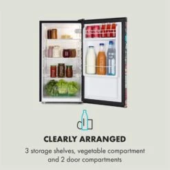 Für Singles, Kleinhaushalte, Partyräume oder Gartenhäuschen: Mit 90 Litern Nutzinhalt bietet der Klarstein Cool Vibe Kühlschrank auf 3 Ebenen viel Platz für Lebensmittel aller Art. Individuelle Ordnung schaffen dabei zwei Glasregale, die auf vier Einschüben je nach Lagerbedarf eingesetzt werden können. Das extra kühle Crisper Gemüsefach im Boden hält Obst und Gemüse bei nahezu 0 °C besonders lange frisch und knackig. Zwei Türfächer bieten den nötigen Stauraum für Flaschen und Gläser – hier hat einfach alles seinen Platz. Damit der Kühlschrank optimal an alle Stellplatzwünsche angepasst werden kann, ist der Türanschlag mit wenigen Handgriffen wechselbar.
