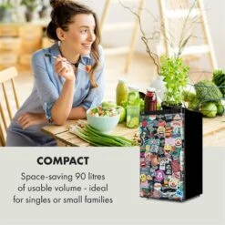 Der Comic-Superheld unter den Kompaktkühlschränken! Der Klarstein Cool Vibe Kühlschrank ist nicht nur kompakt und sparsam, er begeistert auch durch sein erfrischendes Äußeres. Sein VividArt Concept, belebt nicht nur die Tür, sondern die ganze Küche mit seinem Manga-Style.