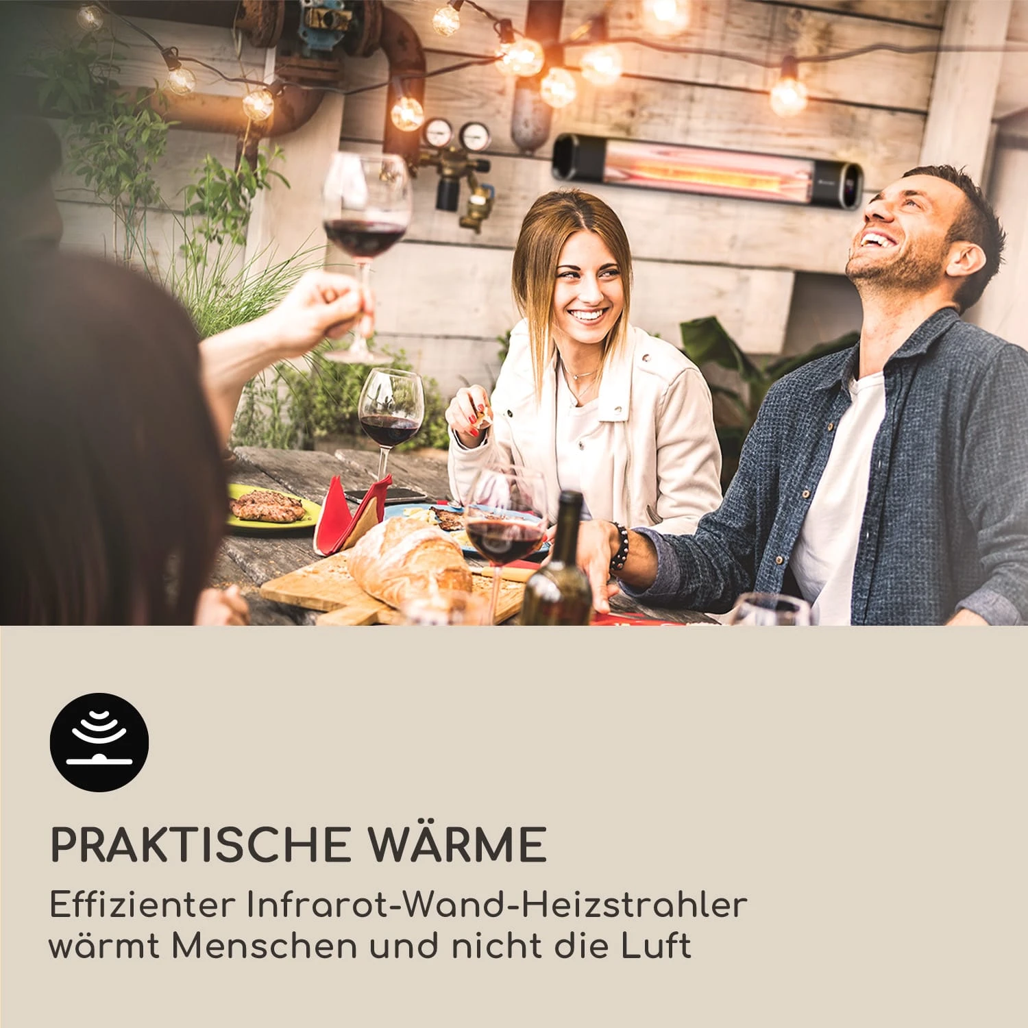 Wenn die Sonne untergeht, ist der Spaß vorbei? Nicht mit dem blumfeldt Dark Wave Infrarot-Heizstrahler! Mit dem platzsparenden, effizienten Wand-Heizstrahler fängt die Feier am Abend erst richtig an. Wenn die Temperaturen fallen, wird einfach die gewünschte Heizstufe eingeschaltet und so jeder Party neues Leben eingehaucht. So lässt es sich bis spät in die Nacht gemütlich im Freien dinieren.