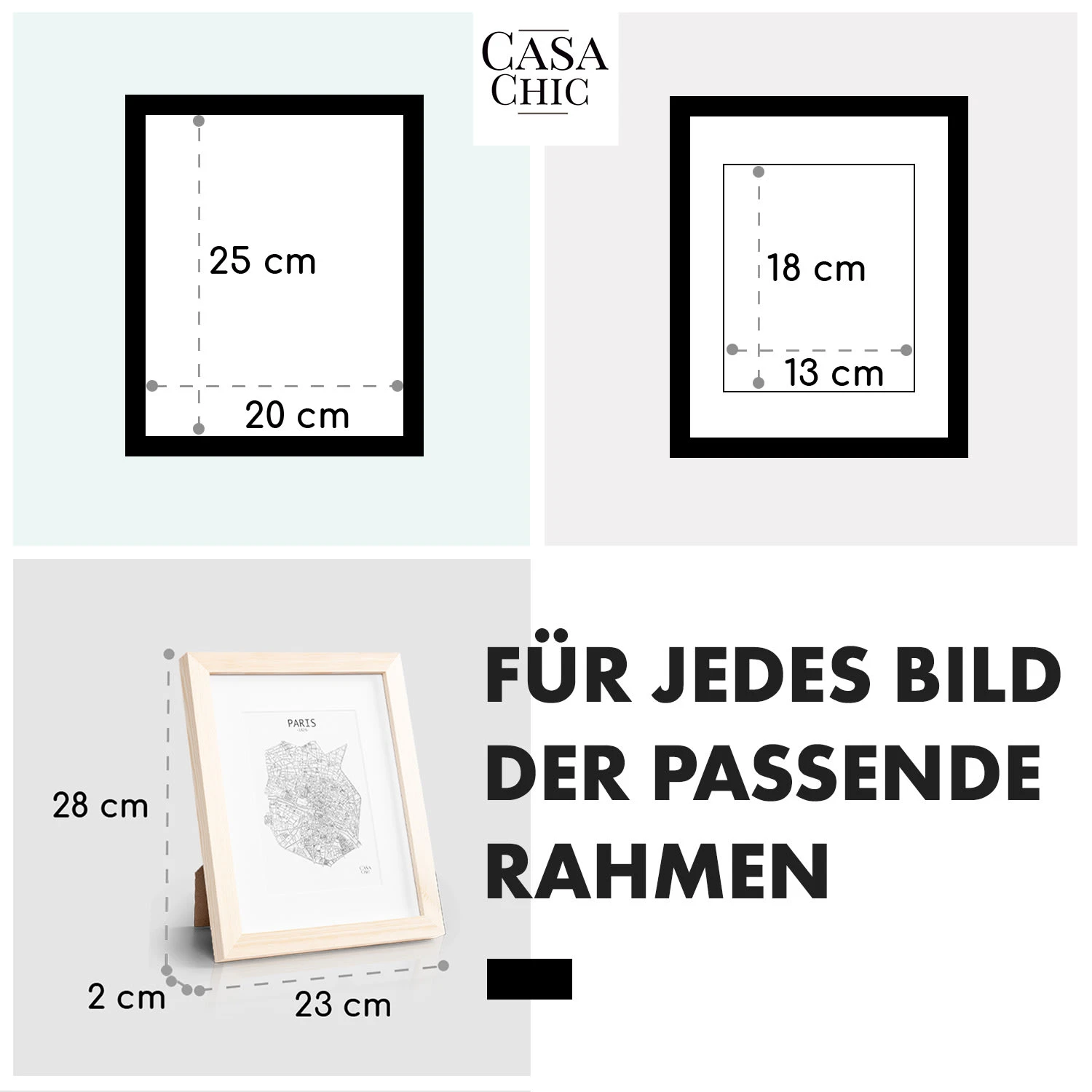 - Rahmen: ca. 2 x 2 cm (BxT)