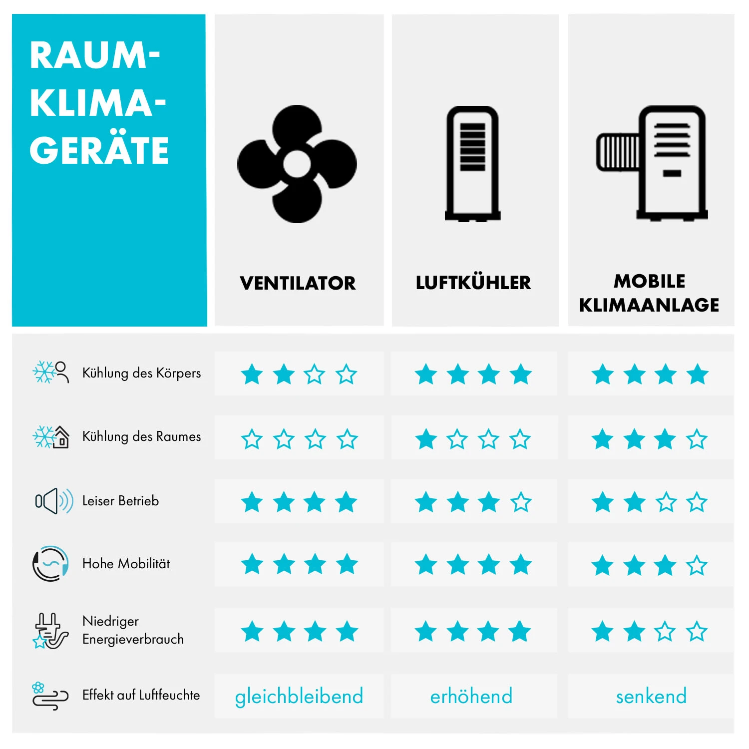 - Rechtslauf: verteilt warme Deckenluft im Raum bei kaltem Wetter