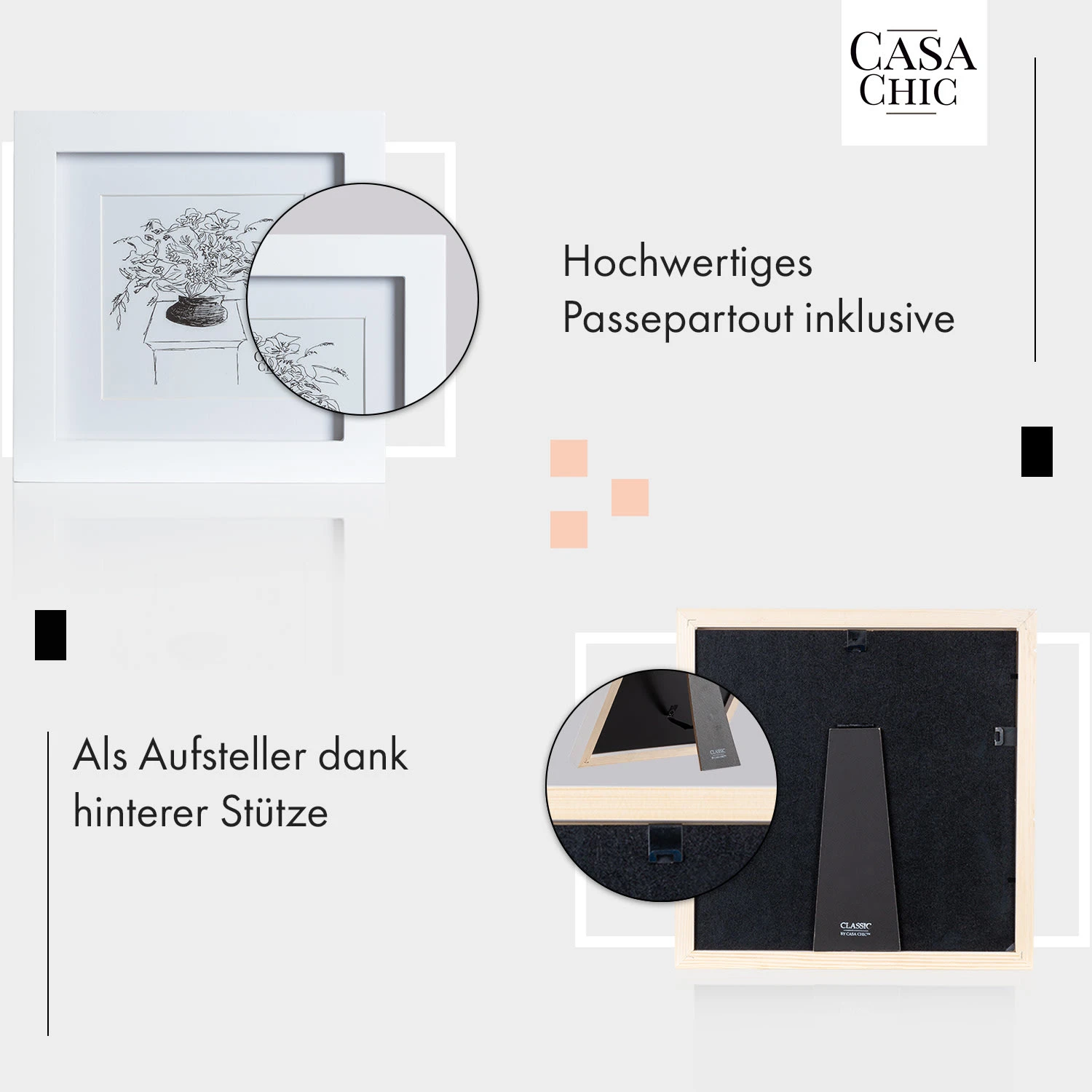 Der ansprechende Everton Bilderrahmen von Casa Chic by blumfeldt aus Echtholz bringt deine Fotos und Bilder ideal zur Geltung. Bleibe flexibel und gestalte wunderschöne Wandcollagen oder arrangiere deine Lieblingsfotos auf dem Sideboard oder im Regal. Das mitgelieferte Passepartout überlässt dir die Wahl des passenden Bildausschnitts. Ein schlichtes Rahmenprofil und die Frontscheibe aus Echtglas sorgen für Eleganz und besten Schutz.