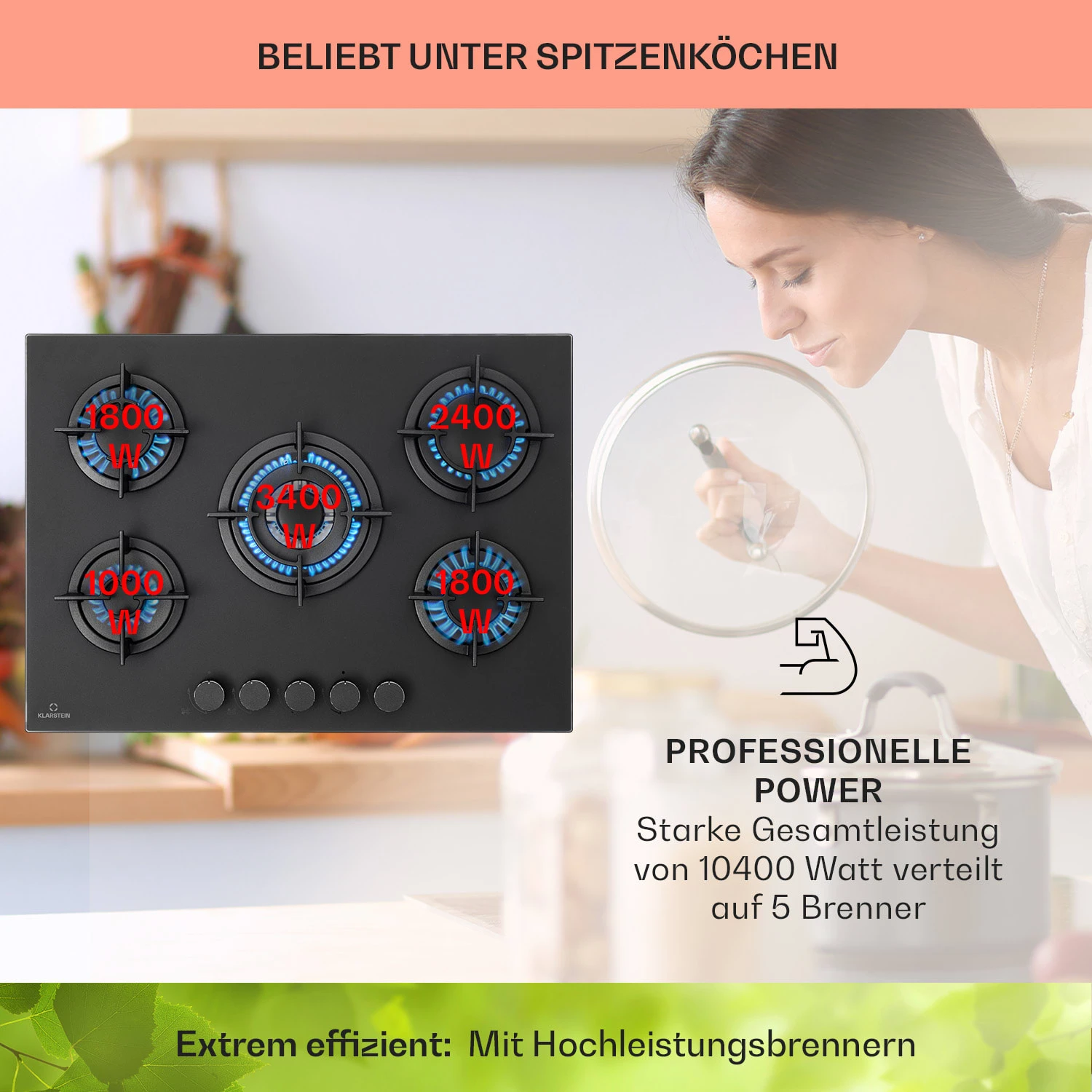 - energiesparendes Gaskochfeld mit 5 Kochfeldern