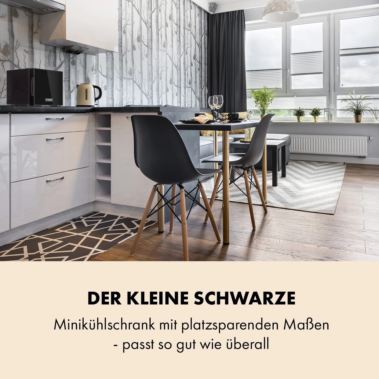 Frosty Mini-Kühlschrank EEC A Spiegelglastür 10 Liter Schwarz