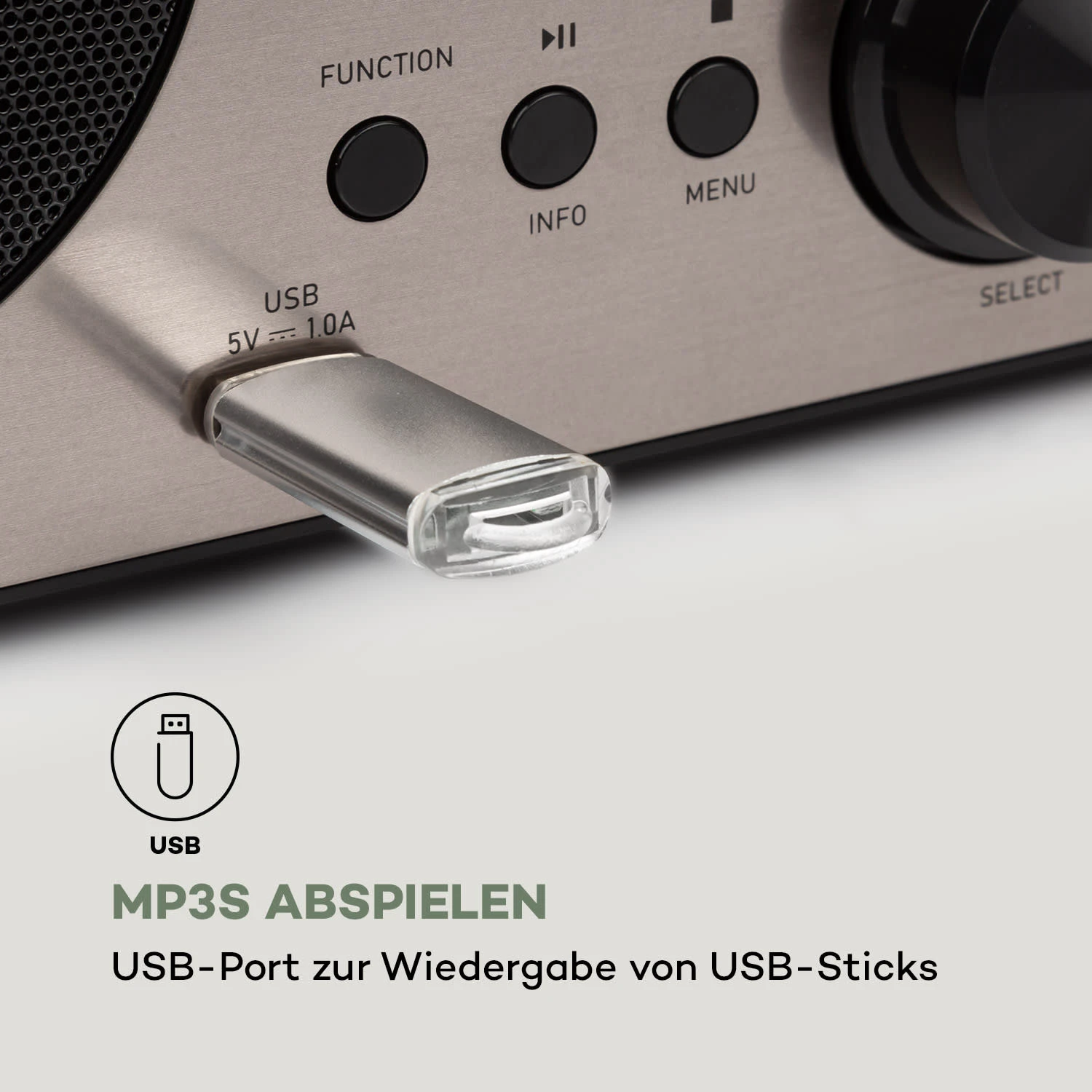 Die elegante auna Harvard IR Kompaktanlage bietet viele nützliche Features und gehört mit ihrer Front in Aluminium-Look zur Elite der kompakten Stereoanlagen.