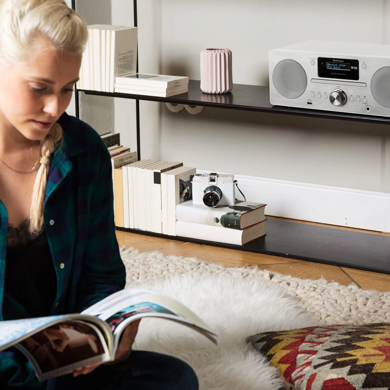 Das elegante Design mit einer Frontverkleidung im Aluminium-Look und die abgerundeten Kanten der auna Harvard Micro-Stereoanlage beherbergen einen digitalen DAB/DAB+ -Tuner sowie einen UKW-Tuner. Von dem enormen Angebot an Sendern können insgesamt bis zu 80 gespeichert werden. RDS-Informationen (z.B. Titel, Interpret) werden auf einem LC-Display dargestellt. Ein Equalizer mit vier Presets, eine X-Bass-Funktion, ein Sleep-Timer und eine Weckfunktion gehören zu den weiteren Features der elitären Microanlage. Die Bedienung erfolgt direkt am Gerät oder bequem per Fernbedienung von der Couch aus.