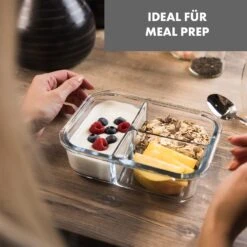 Vielseitig, bruchsicher und praktisch: Die Glaswerk Hopewell Aufbewahrungsboxen von Klarstein sind mit bis zu drei getrennten Kammern ideal für die Aufbewahrung und Mitnahme von Lebensmitteln.