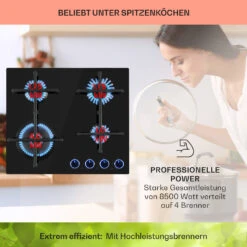 Effizientes Kochen bei niedrigeren Kosten mit allen Vorteilen des Gasherds: Das Illuminosa 4 Gaskochfeld von Klarstein überzeugt nicht nur Hobbyköche.