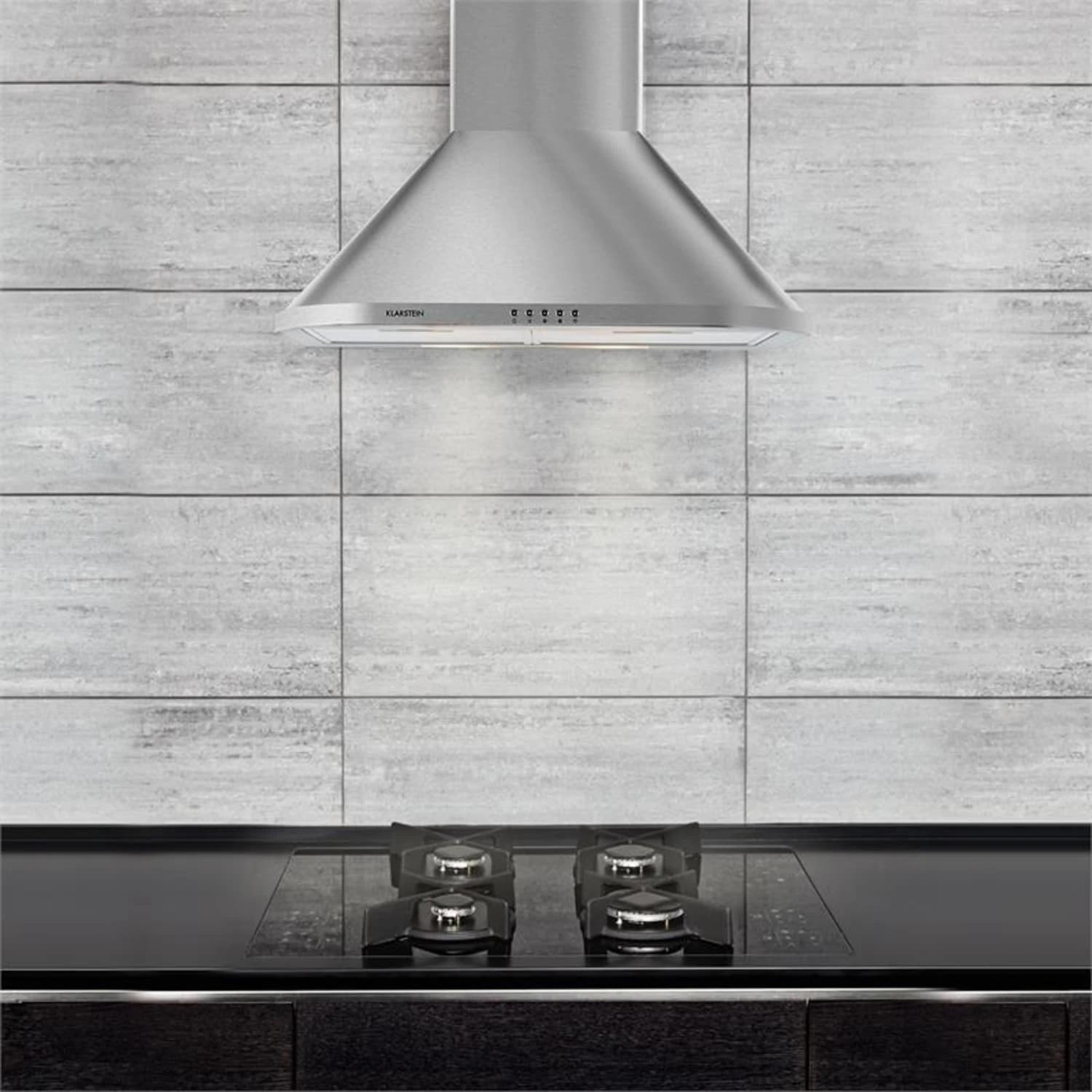 Das klassische Design und die edle Anmutung des Geräts machen das Gerät darüber hinaus zu einem formschönen Hingucker. Angebracht wird die 60 cm breite Klarstein Dunstabzugshaube über der Kochfläche: Eine entsprechende Wandhalterung ist im Lieferumfang enthalten.