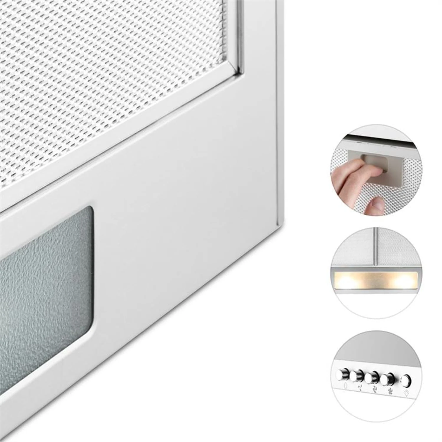 Je nach Bedarf kann die Intensität der Saugkraft angepasst werden: Mit 3 Leistungsstufen ist die Dunstabzugshaube für verschiedene Einsatzszenarien gewappnet. Die praktischen Leuchten, die in die Unterseite eingefasst sind, bieten zusätzlich Hilfestellung: Töpfe, Pfannen und ihren Inhalt hat man mit ihnen zu jeder Tageszeit bestens im Auge. Die höchste Leistungsstufe befördert bis zu 536 m³/h Abluft aus der Küche, dabei ist das Betriebsgeräusch mit 57 dB auf höchster Stufe angenehm leise.