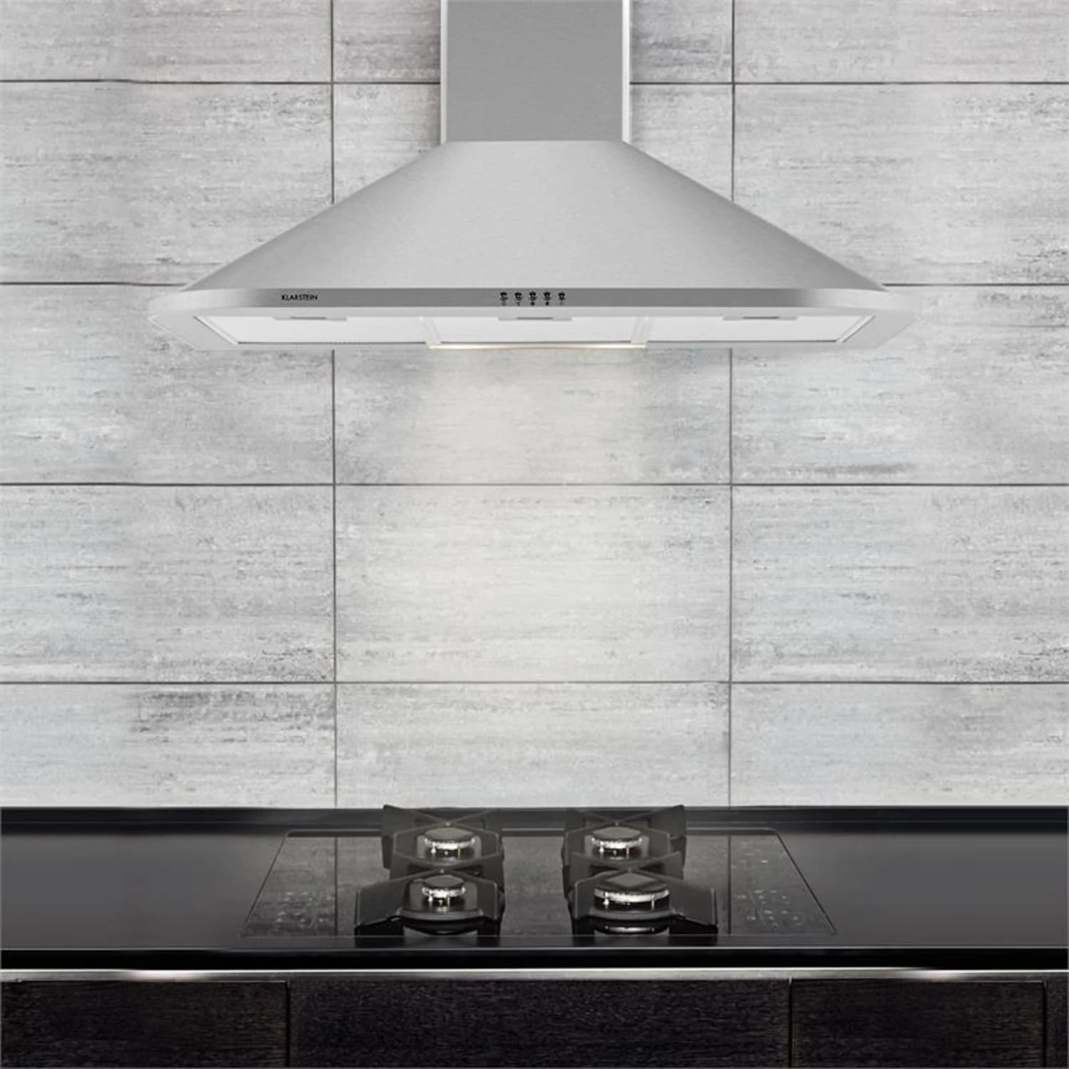 Das klassische Design und die edle Anmutung des Geräts machen das Gerät darüber hinaus zu einem formschönen Hingucker. Angebracht wird die 90 cm breite Klarstein Dunstabzugshaube über der Kochfläche: Eine entsprechende Wandhalterung ist im Lieferumfang enthalten.