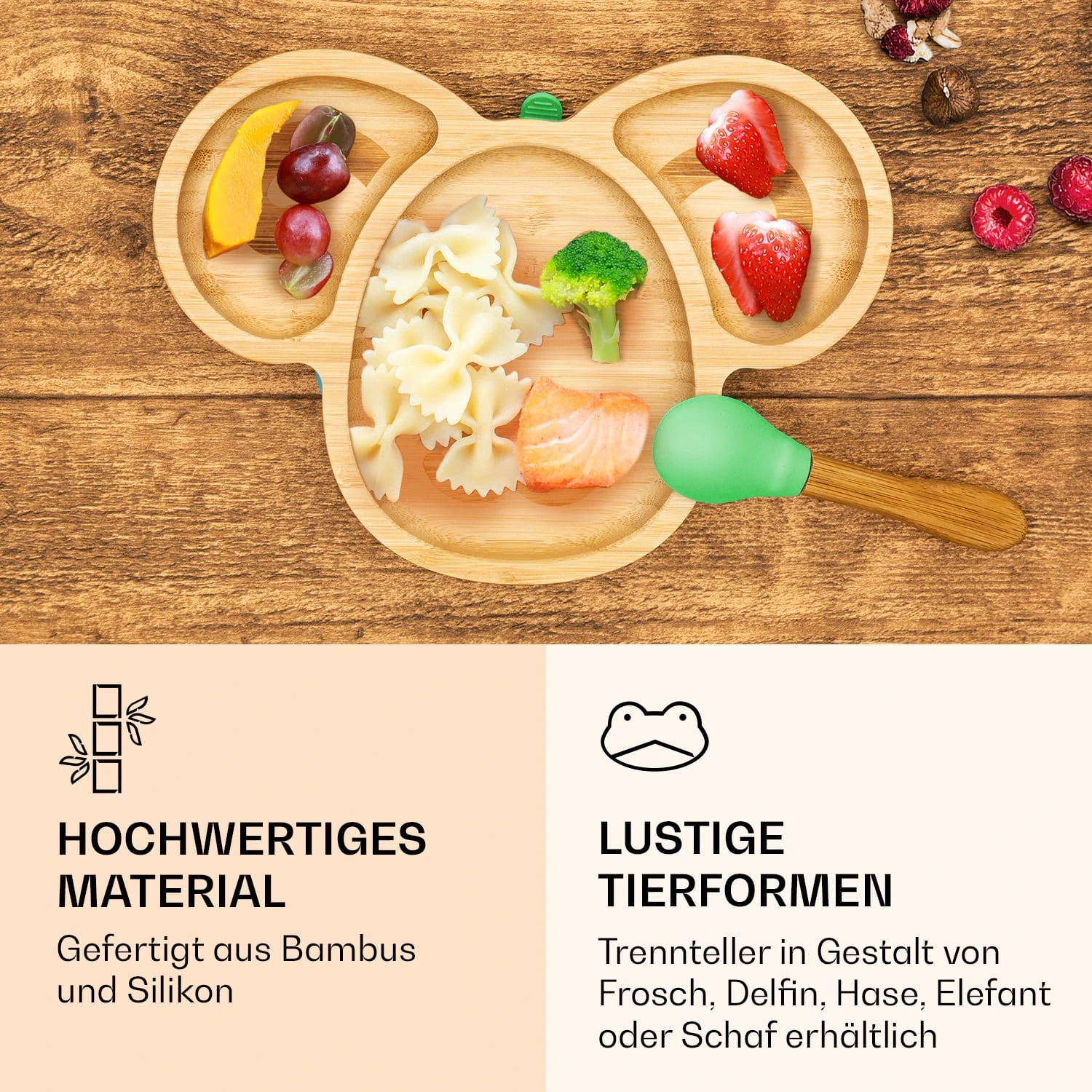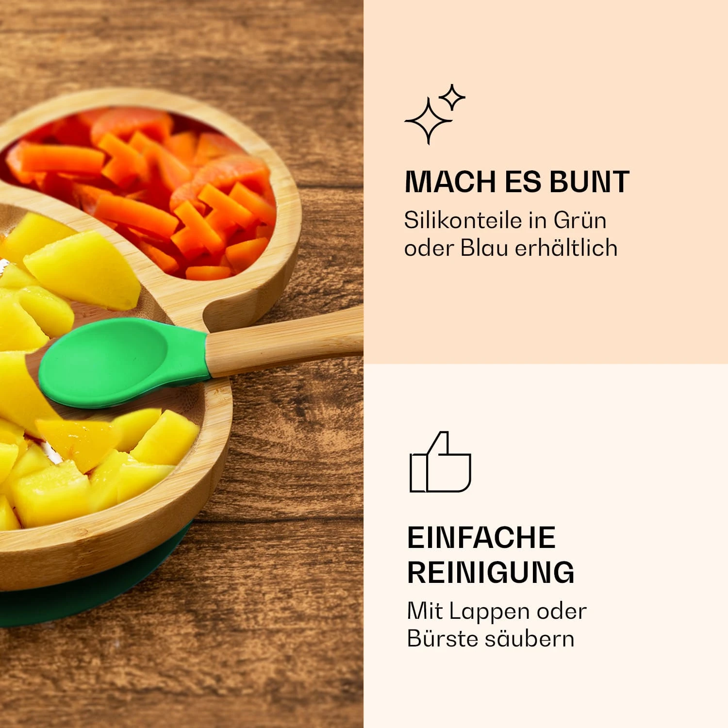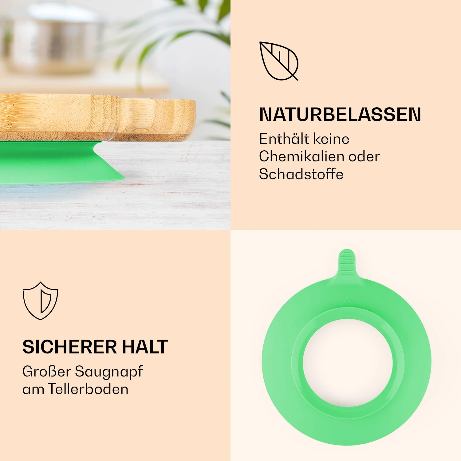 Kindergeschirr Bambusteller & Löffel 250 Ml Inkl. Saugnapf 18 X 18 Cm