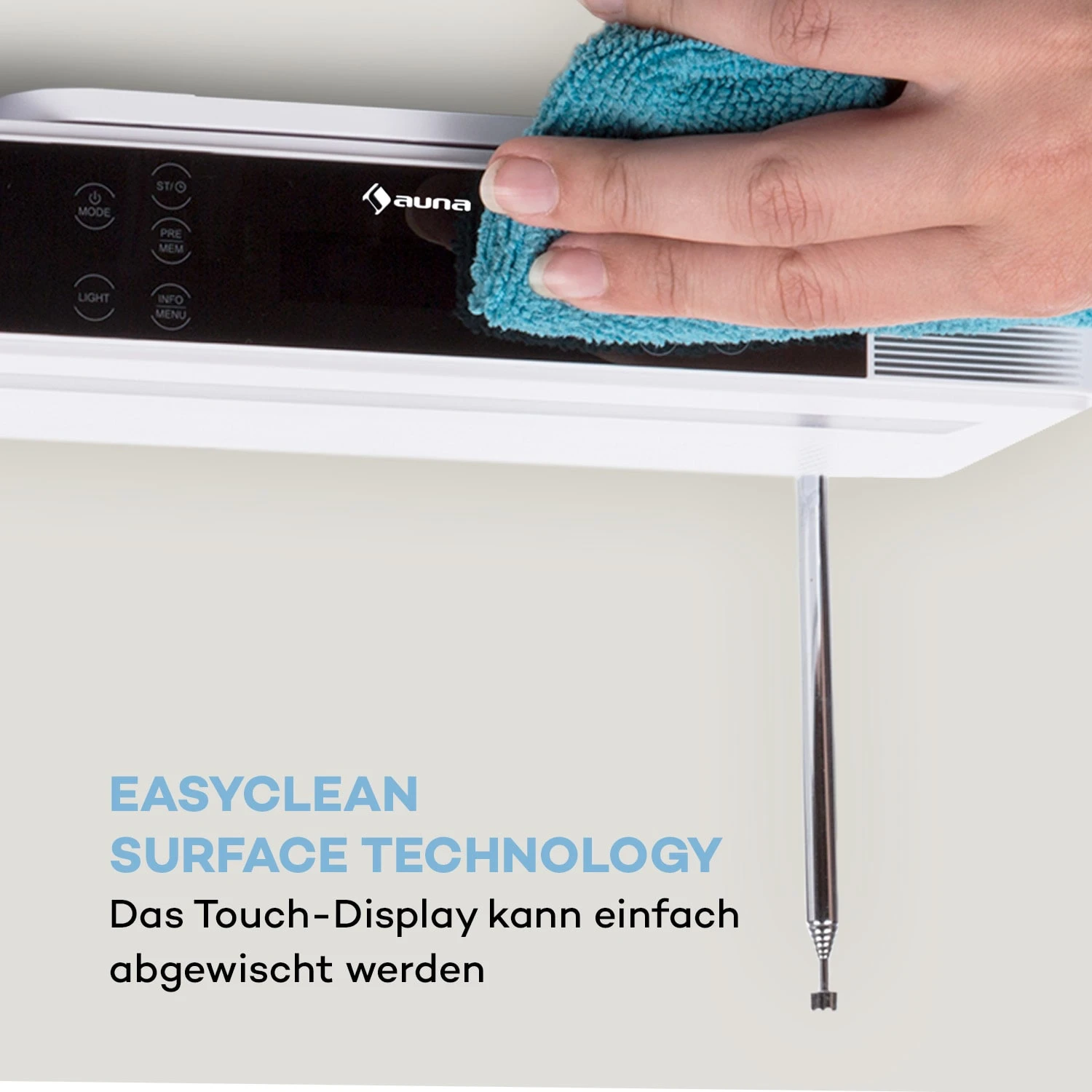 Ein echtes Highlight dieses Küchenradios ist die integrierte Bluetooth-Schnittstelle. Diese ermöglicht das kabellose Streamen von Musik via Smartphone, Tablet oder PC. Zusätzlich ermöglicht es eine Freisprechfunktion, mit der eingehende Anrufe dank des integrierten Mikrofons angenommen werden, sodass man jederzeit erreichbar bleibt. Neben Bluetooth bietet das auna KR-140 Küchenradio ein Touch-Display mit spezieller EasyClean surface technology, über das alle Funktionen gesteuert werden. So kann das Unterbau-Radio ohne Bedenken beim Kochen bedient und hinterher ganz einfach abgewischt werden.