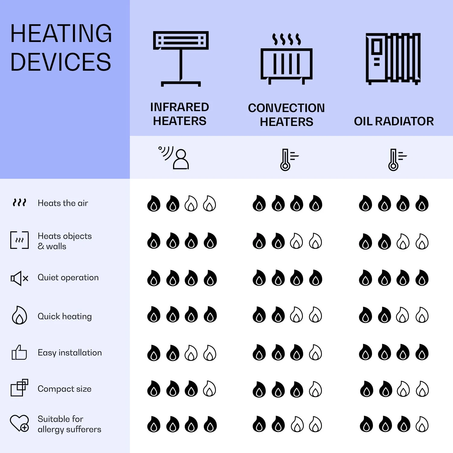 - Betriebsart: Wärmestrahlung (Infrarot-Heizstrahler) / Konvektion