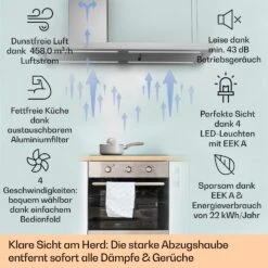 Freie Sicht in der Küche: Mit der Klarstein Limelight Wandabzugshaube sind Essensgerüche, Dampf und Fettrückstände schnell verschwunden.