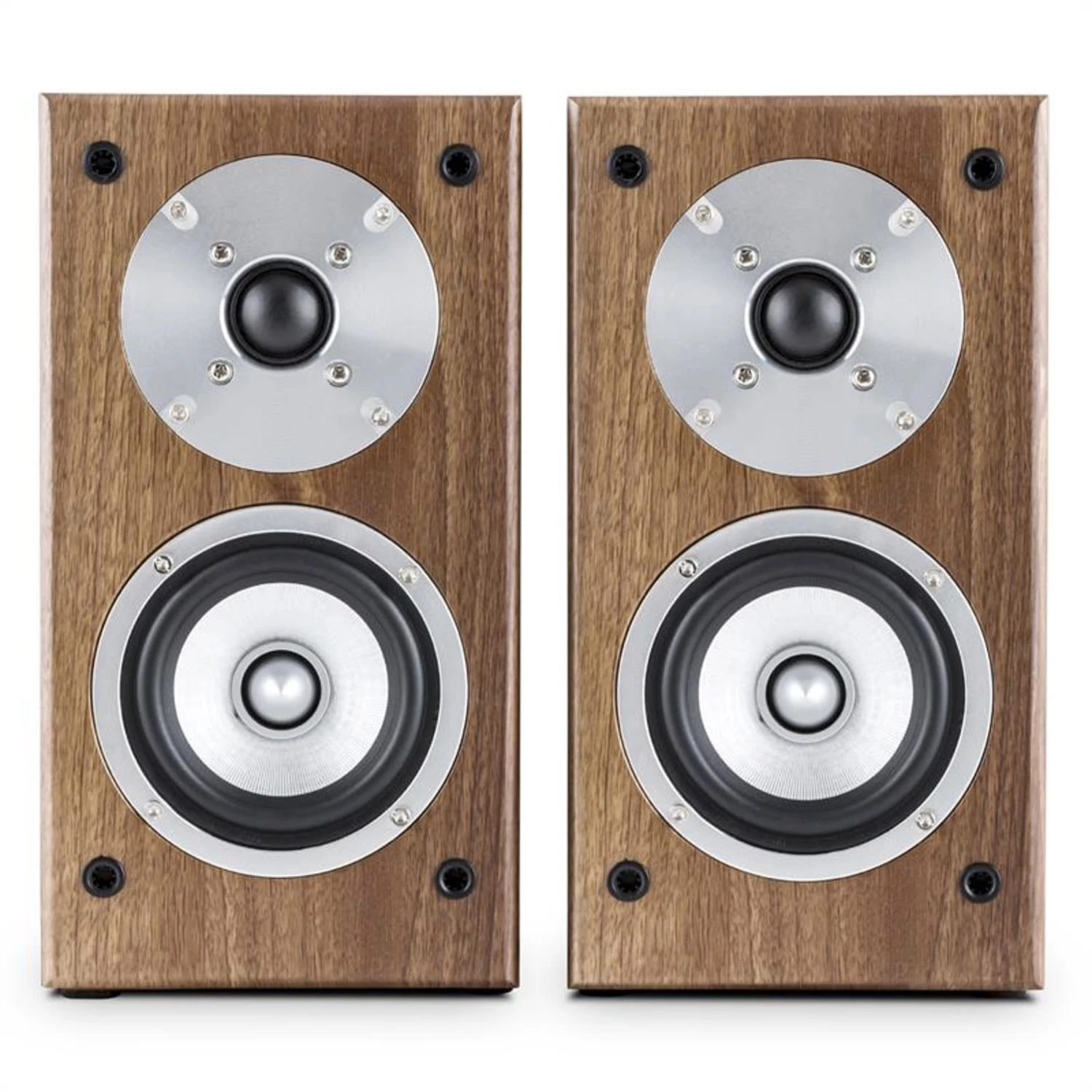 Für ein harmonisches Zusammenspiel mit der Wohneinrichtung schmückt sich der auna Linie 501 BS Regallautsprecher mit einer schmalen Formensprache samt Walnuss-Finish und abnehmbarer Lautsprecherabdeckung. Befestigungspunkte an der Rückseite ermöglichen eine platzsparende Montage direkt an der Wand.