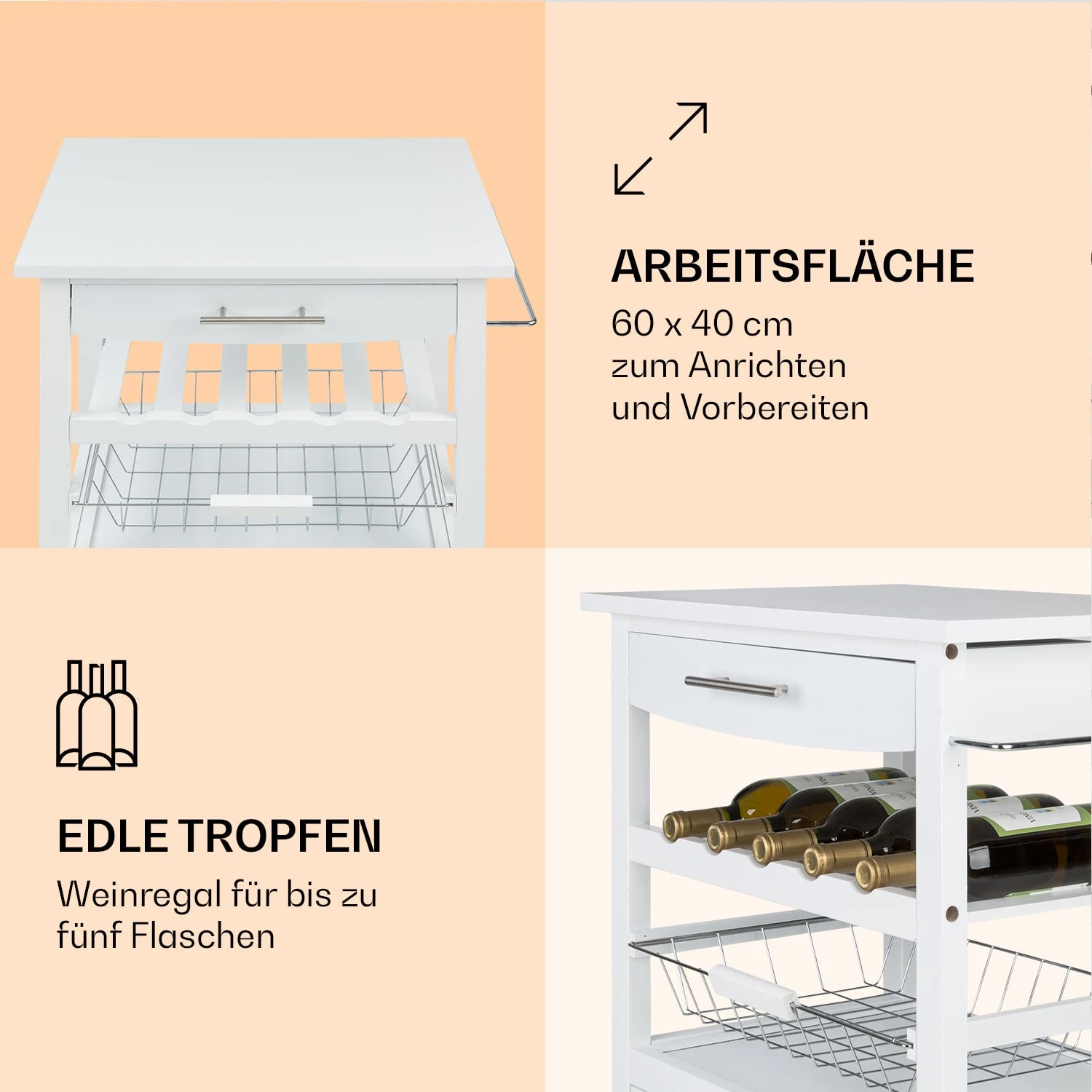 Louisiana Servierwagen Küchenwagen 5 Etagen Holz Handtuchhalter Mobil