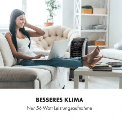 Maximale Erfrischung mit sparsamen 55 Watt! Der Klarstein Maxfresh 4-in-1 Luftkühler bringt punktgenaue Abkühlung an heißen Sommertagen. Als Ventilator, Luftkühler und Luftbefeuchter in einem sorgt er überall für einen erfrischenden Luftstrom und einen kühlen Kopf – dank dem Nachtmodus erleichtert er dir zudem den Schlaf in heißen Sommernächten. Besonders hierbei überzeugt der komfortable Abschalttimer, welchen du bis zu 15 Stunden stundenweise vorprogrammieren kannst.