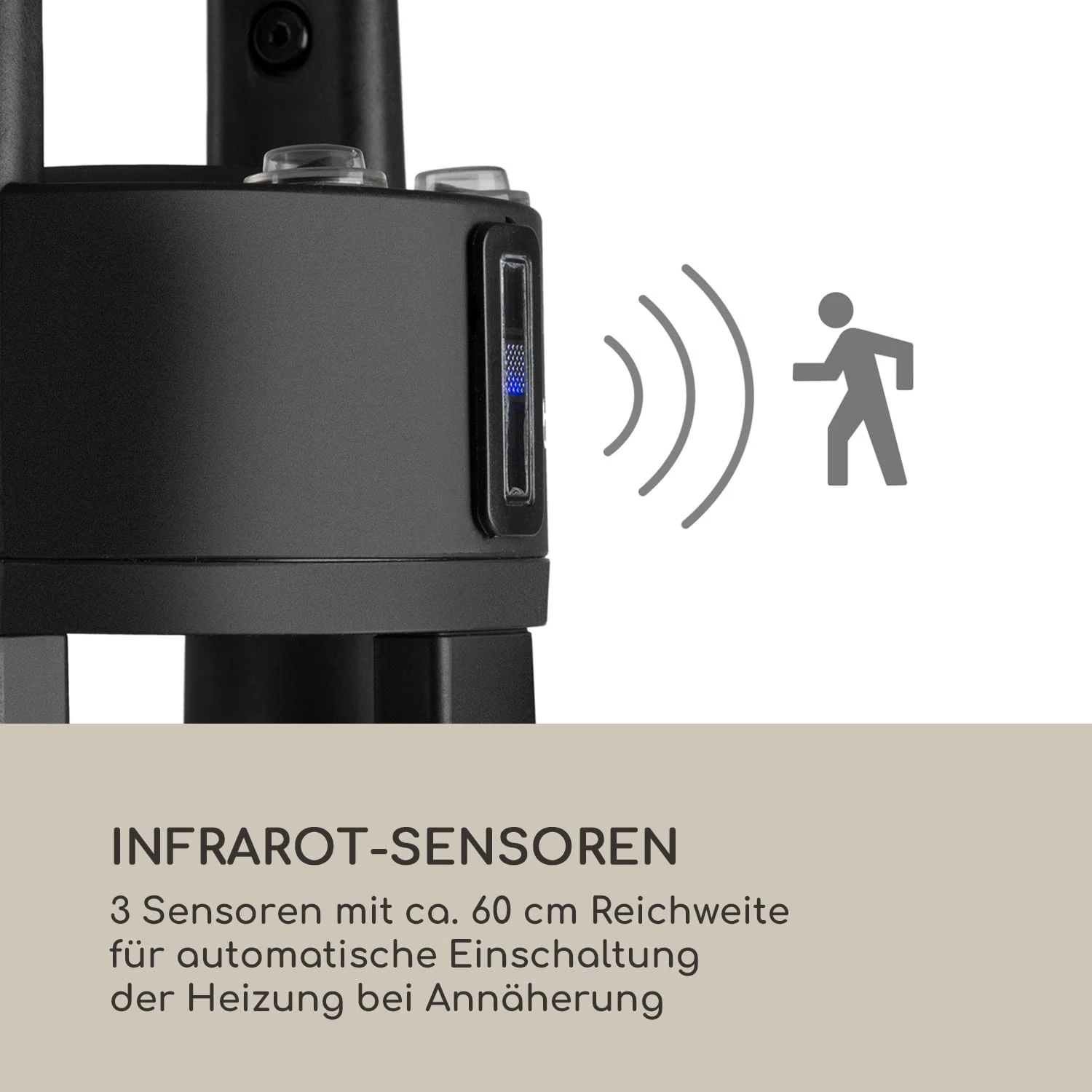 - IR-Sensor reagiert auf Gegenstände oder Personen in 60 cm Umkreis