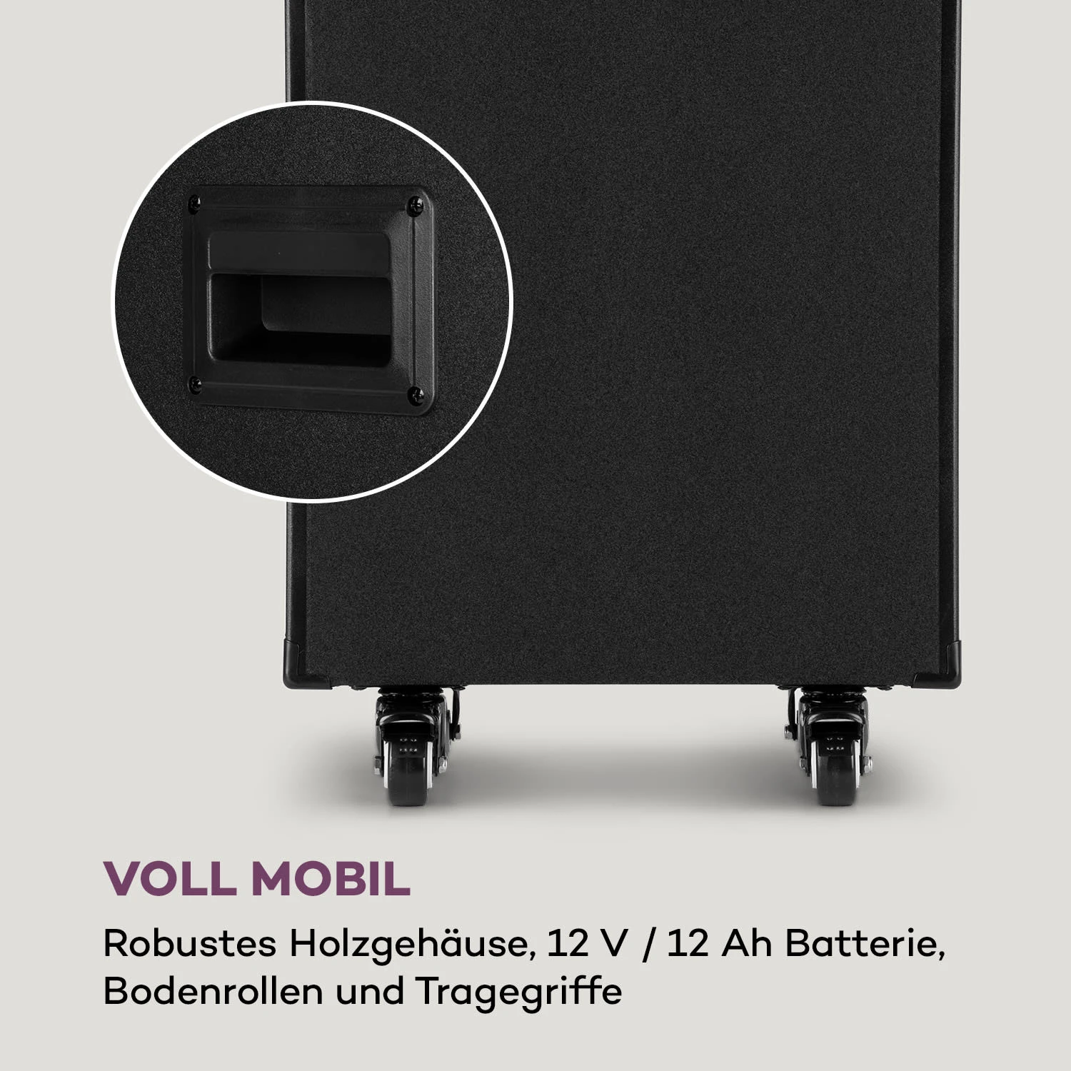 Das auna Pro Spin 10 Karaoke-System ist dank Bodenrollen, einem großen Touch-Display, 2 drahtlosen UHF-Mikrofonen und einem leistungsstarken Akku das ideale Mobil-Gerät für alle Karaoke-Liebhaber.