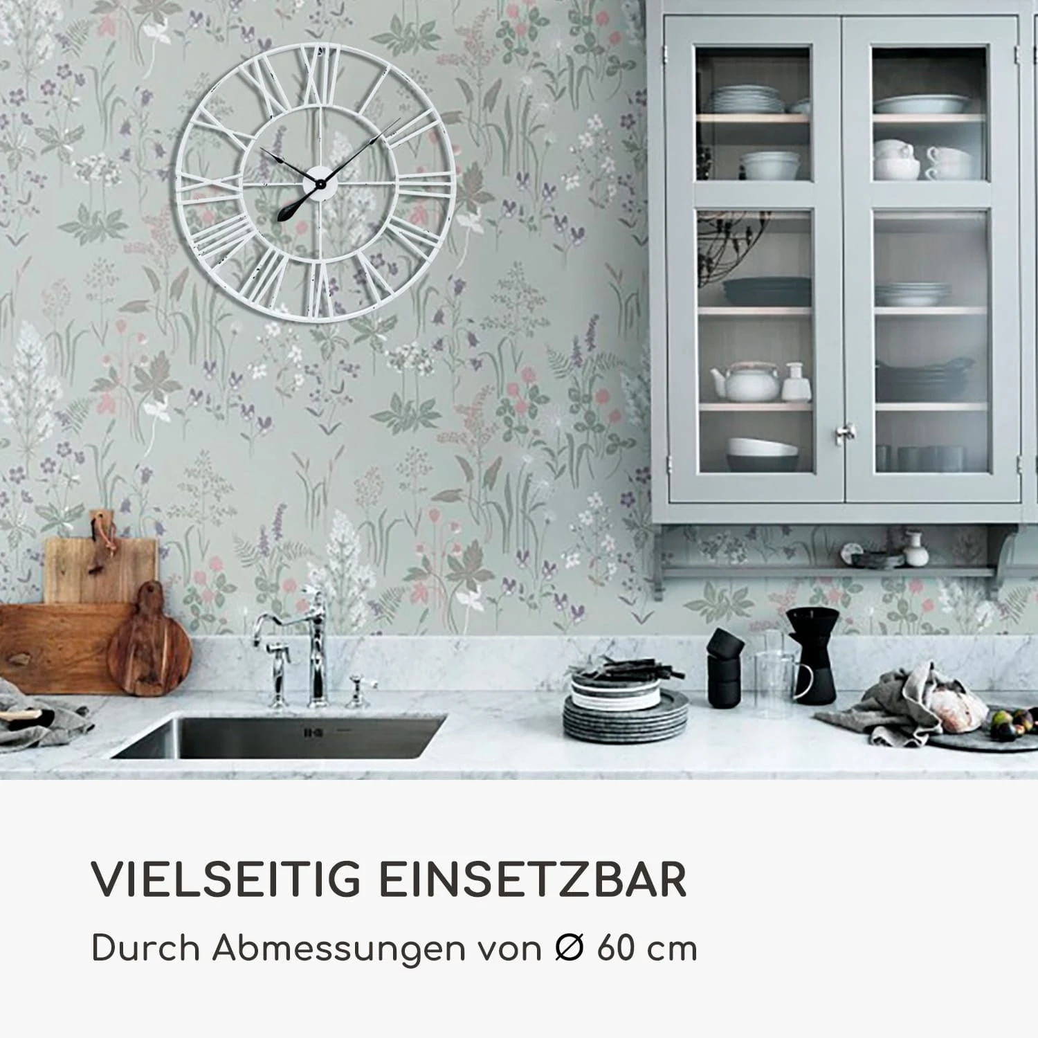 Die Queensway Wanduhr von Casa Chic by blumfeldt mit römischen Zahlen verleiht jedem Interieur eine besonders wohnliche Atmosphäre. Der elegante Metallrahmen mit Vintage-Zeigern macht sie perfekt für jeden Raum, vom heimischen Wohnzimmer über Büros bis hin zum gemütlichen Café oder Restaurant. Die Kombination der leichten Metallzeiger und des hochwertigen Quarz-Uhrwerks ermöglichen eine genaue und stille Zeitmessung! Dank ausbleibender Tick-Geräusche ist die Uhr auch perfekt zur Nutzung im Schlafzimmer geeignet.