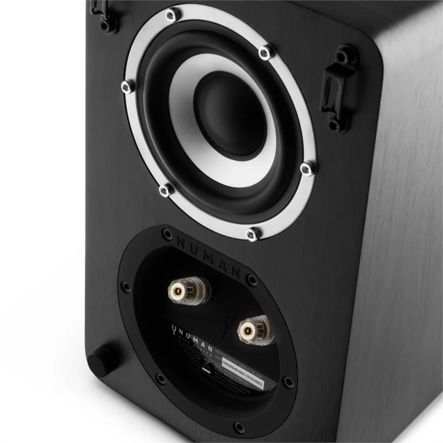 NUMAN´s Retrospective 1979 S ist ein vollwertiger Zwei-Wege-Lautsprecher mit vielen Talenten. Denn dieses kleine Musikkonzentrat, lässt rein äußerlich nicht im Entferntesten erahnen, welche musikalischen Qualitäten und welche Vielseitigkeit in ihm brodeln. Egal ob als Wandlautsprecher, Regallautsprecher im Hi-Fi Betrieb, oder im Background des Retrospective Heimkino-Ensembles.