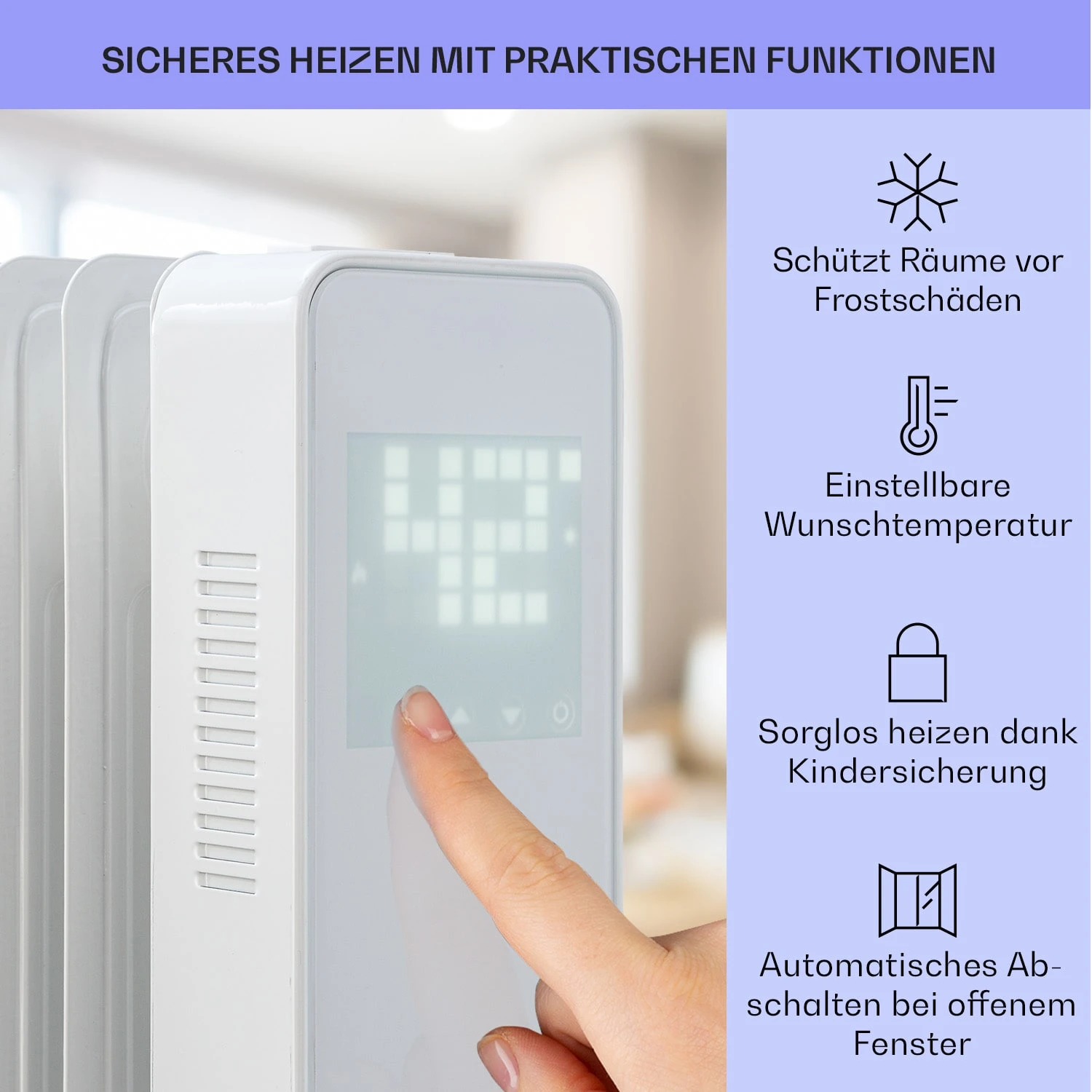 - Heizrippen für besonders schnelles Aufheizen der Raumluft