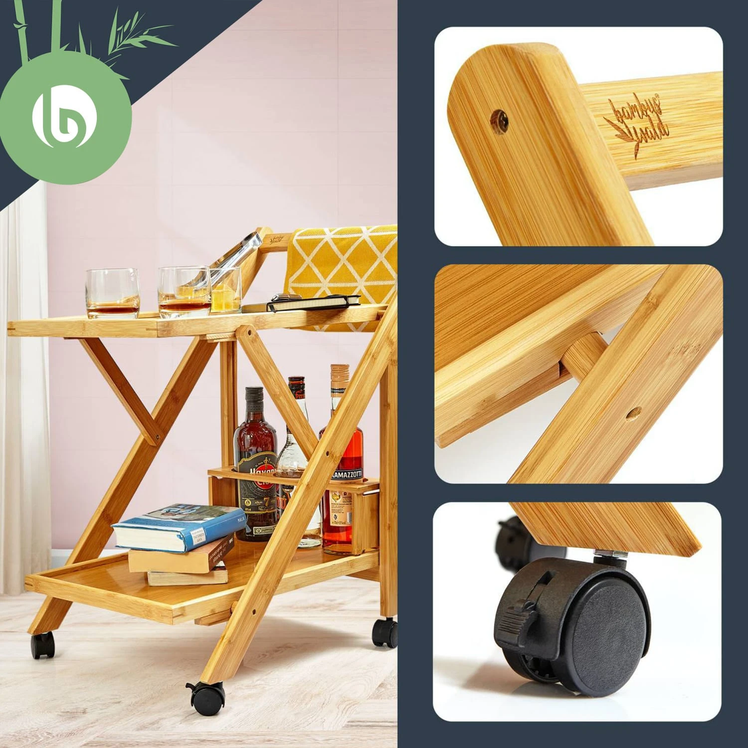 Stabil, multifunktional und ökologisch: Der blumfeldt Servierwagen ist eine natürliche Bereicherung für dein Zuhause.