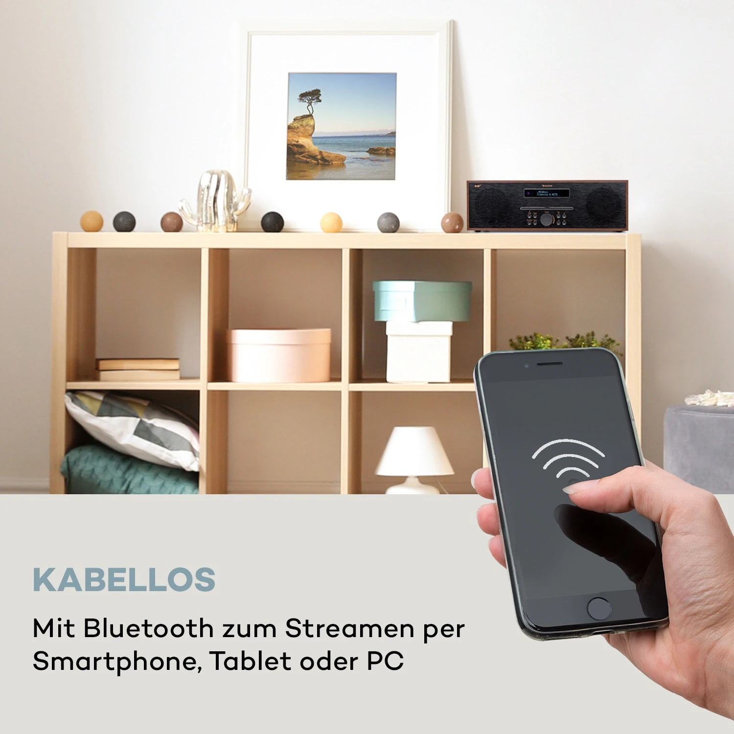 Zusätzlich zur kabellosen Anbindung von Smartphone, Tablet oder PC per Bluetooth können externe Mediaplayer über einen AUX-Eingang angeschlossen werden. Der Slot-In CD-Player gibt die gängigsten CD-Formate wieder, während der USB-Anschluss MP3s abspielt. Natürlich ist eine Buchse für den Anschluss eines Kopfhörers vorhanden, sodass man zu allen Zeiten seiner Lieblingsmusik lauschen kann, ohne andere zu stören.